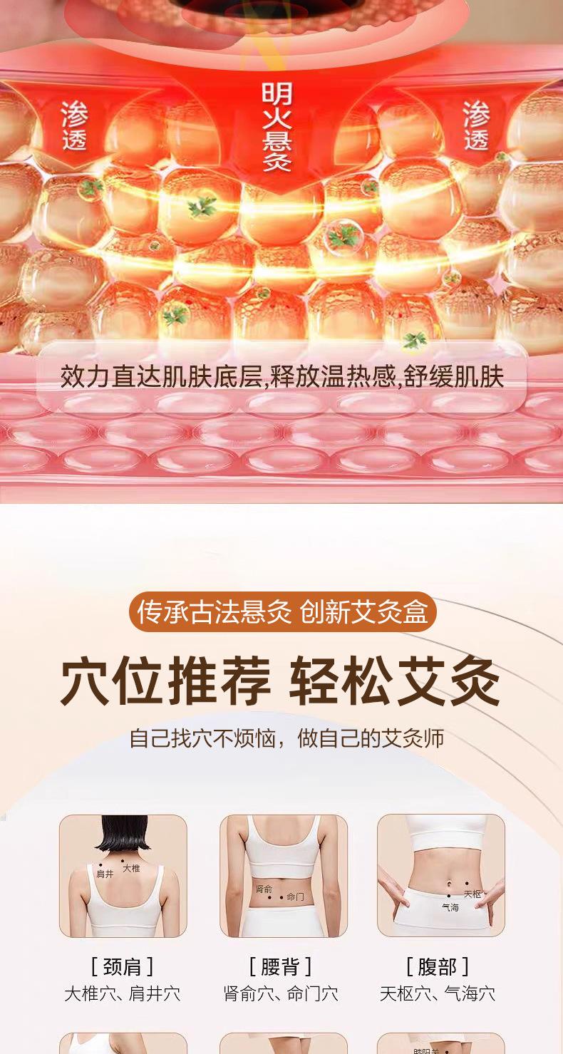 Moxibustion jar + 54 moxa sticks + acupuncture point chart + extension strap + outer box