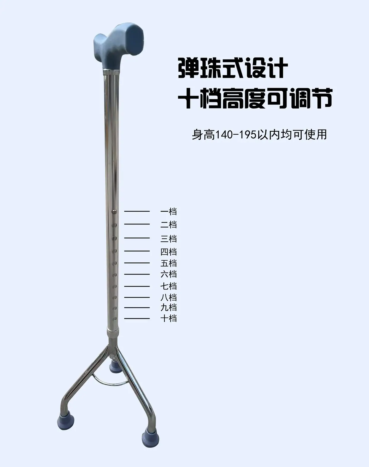 Electroplated aluminum alloy tripod cane