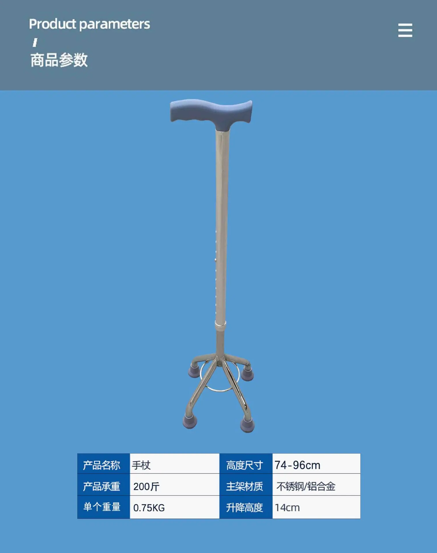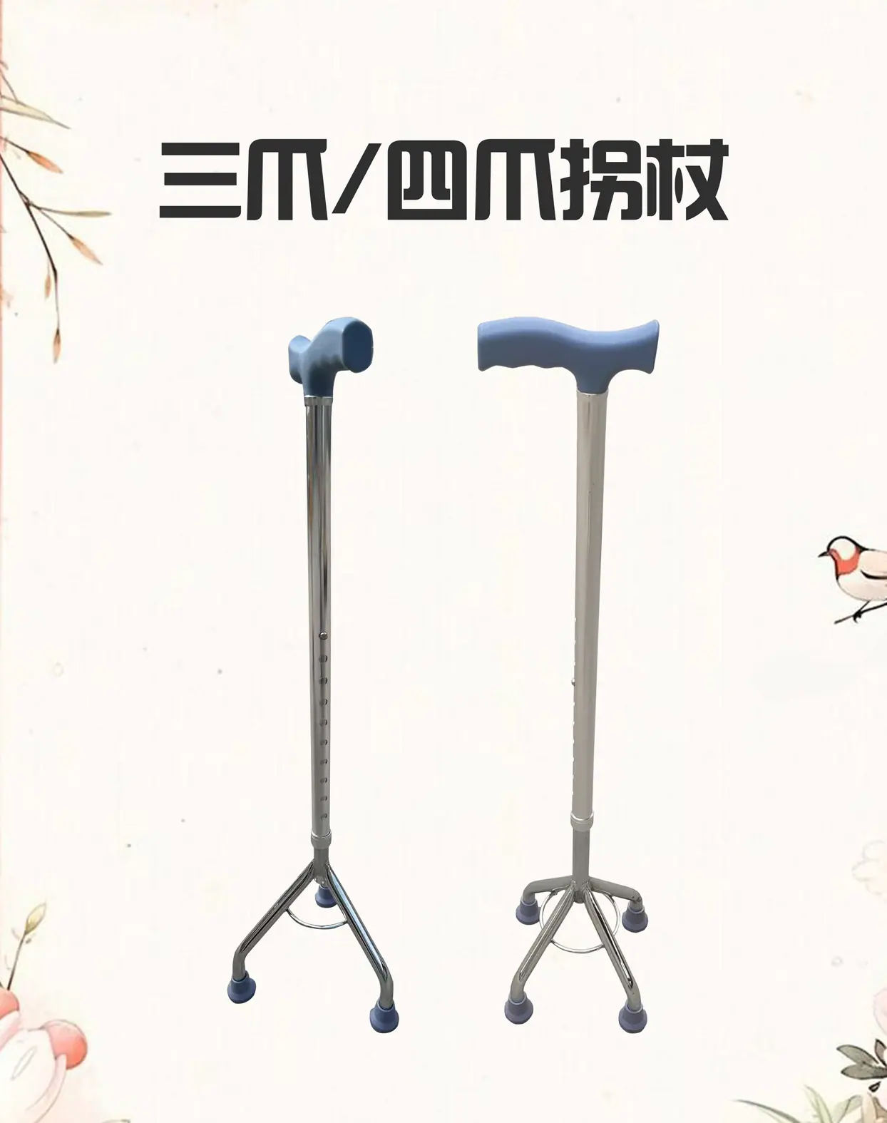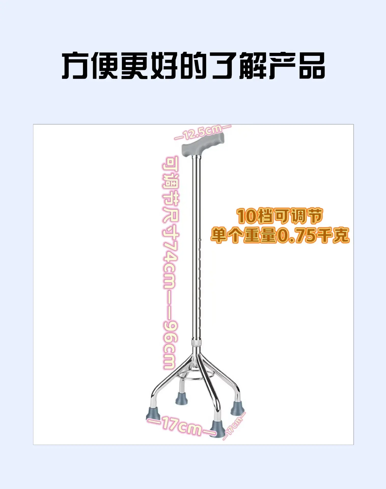 Electroplated Aluminum Alloy Four-Legged Walking Stick