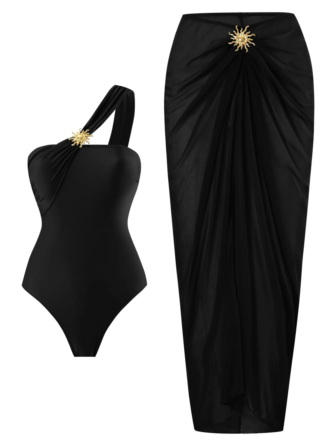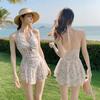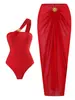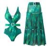 2025 Nuevo Caliente en stock Traje de baño de una pieza Color Sólido para Mujer Europeo y Americano Retro Falda Envolvente de Hombro Traje de baño de dos piezas Venta al por mayor