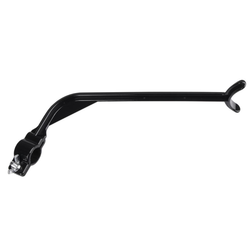 6. Cuando el palo está frente al objetivo, el fijador está contra el antebrazo izquierdo y el palo está en estado horizontal.