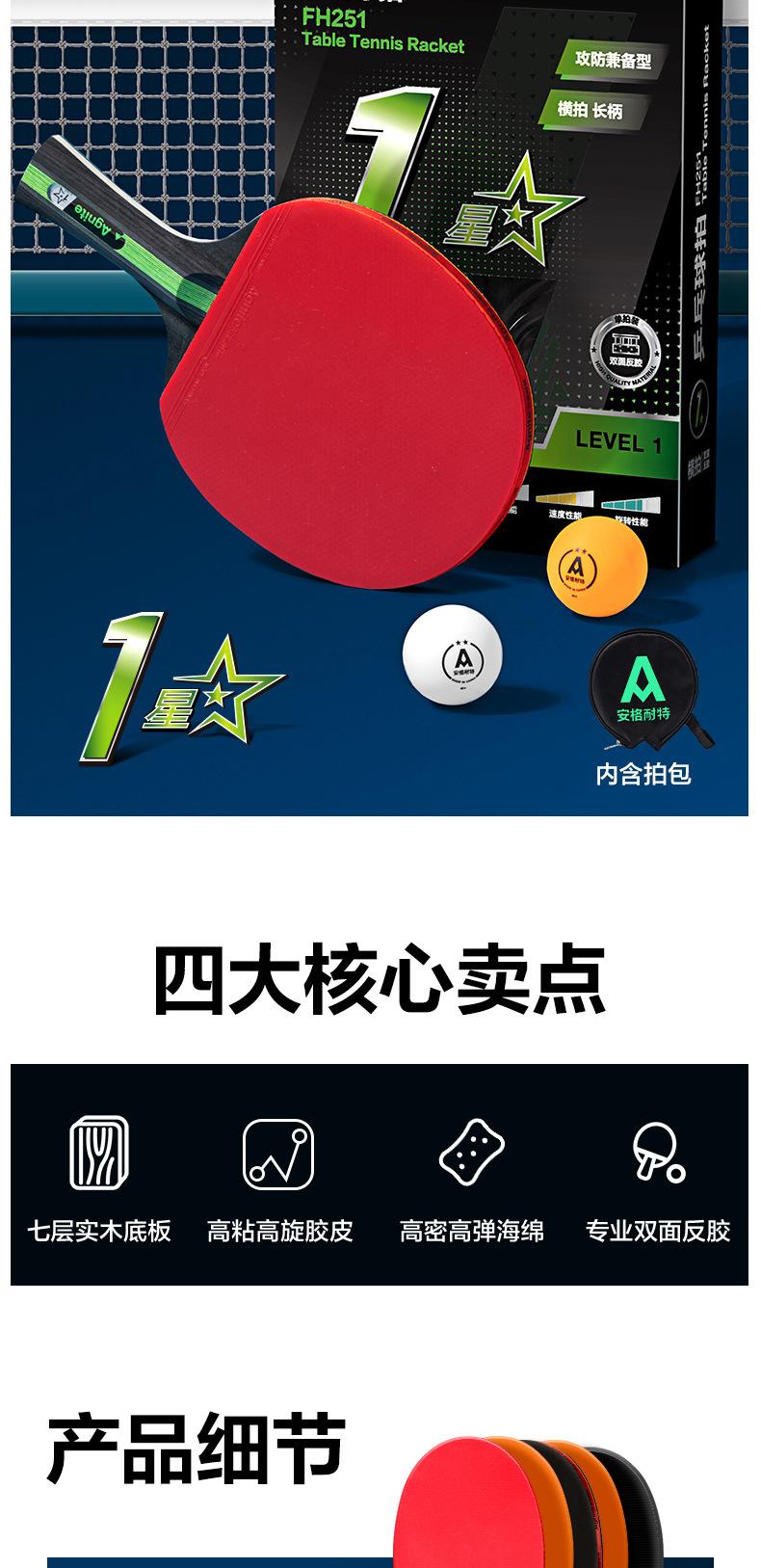 Angerite fh251 one-star table tennis racket horizontal racket (single pack), Angerite fh252 two-star table ten...