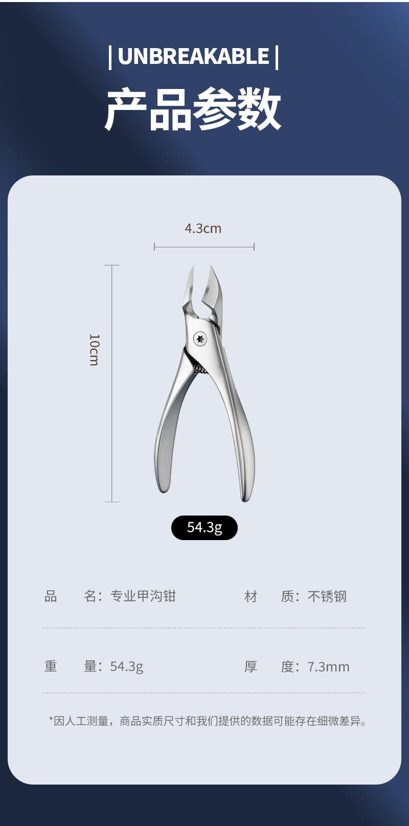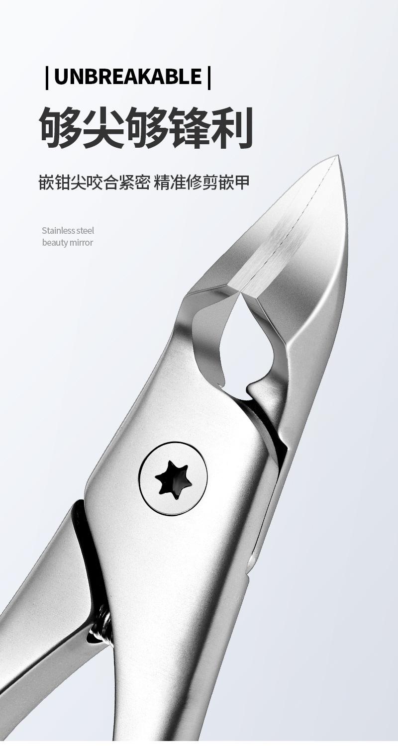 Características destacadas del producto:Punta puntiaguda de 25° alcanza fácilmente los recovecos del surco ungueal, material totalmente de acero, cuerpo compacto de alicates luce más exquisito.