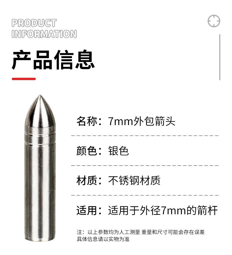 Salón de Competición de Tiro con Arco al Aire Libre Accesorios de Flecha Envoltura Exterior de 7 mm Punta de Flecha Material Metálico Plateado Adecuado para Arco Recurvo Compuesto