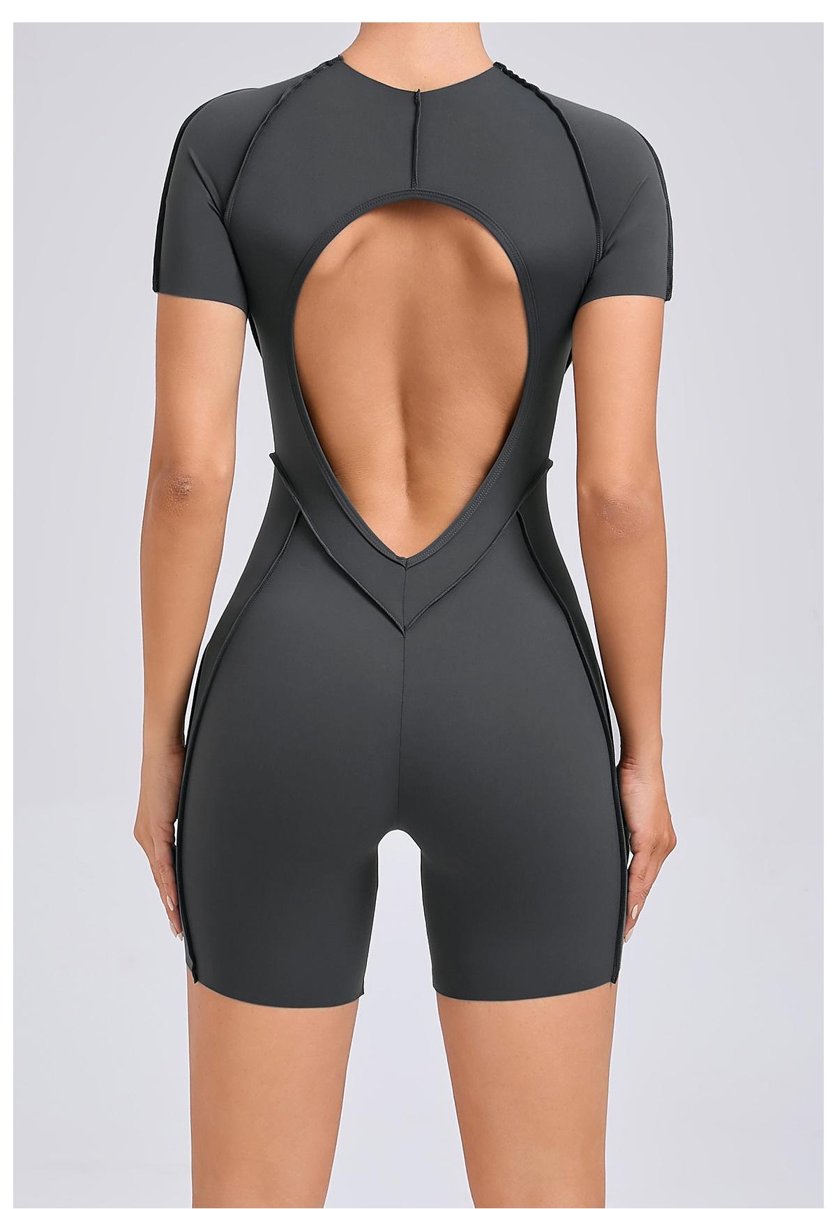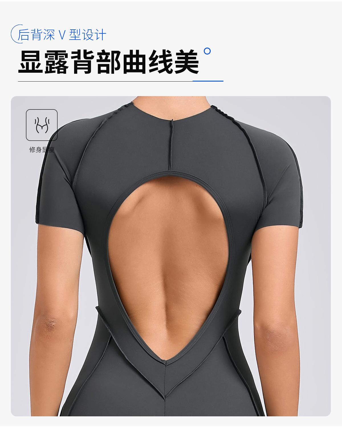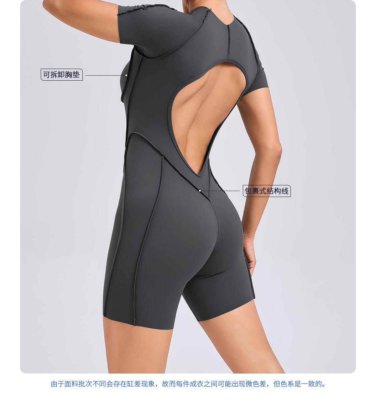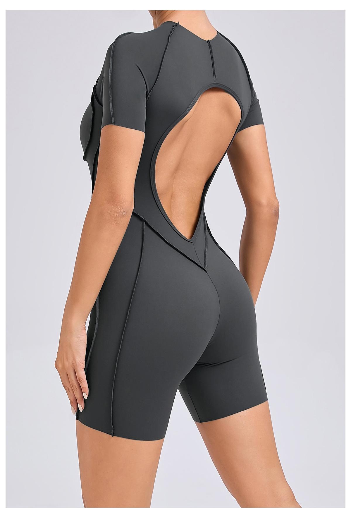 Mono Deportivo Estético Tridimensional Europeo y Americano de Una Pieza Ajustado de Manga Corta y Espalda Descubierta Ropa de Fitness