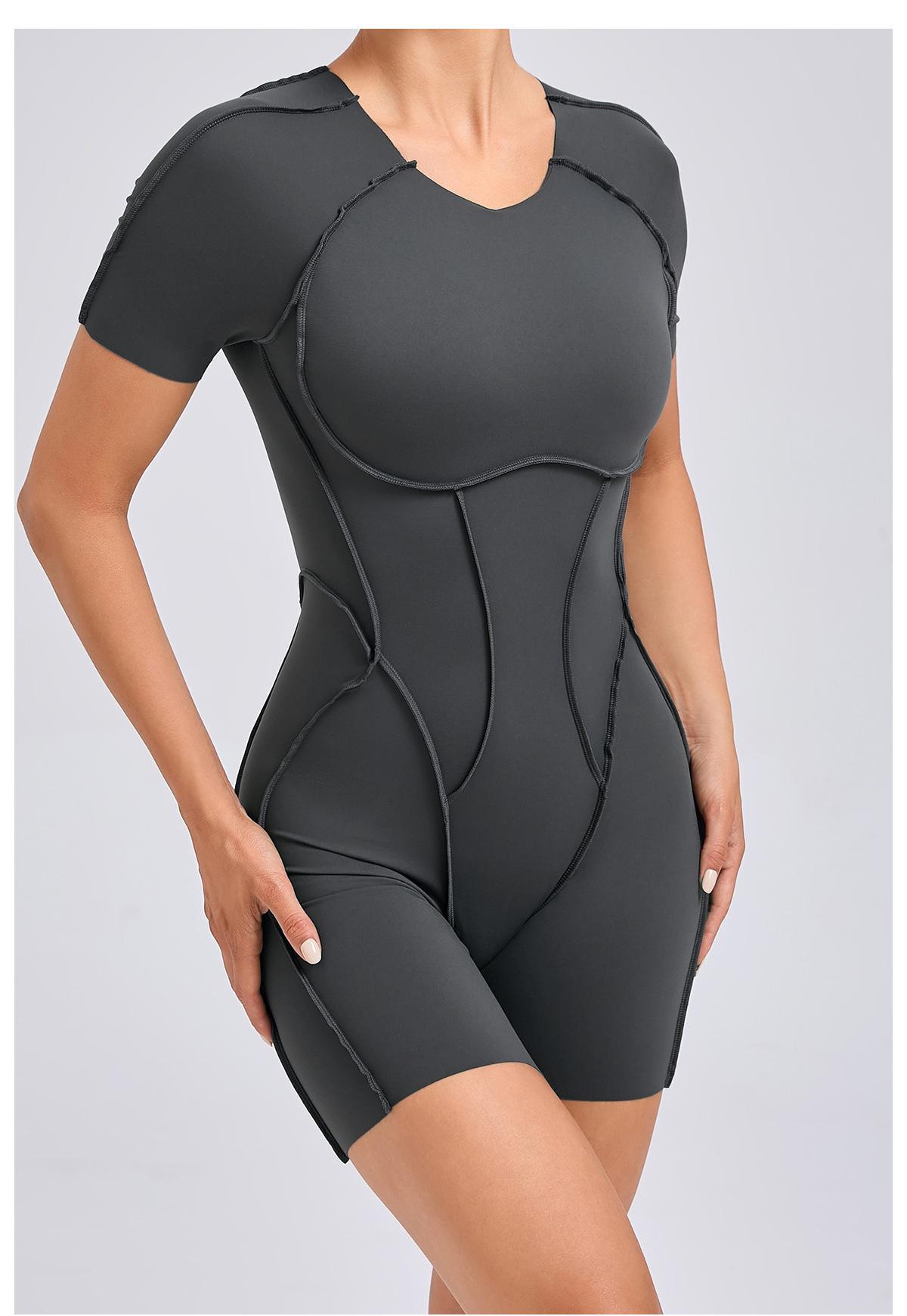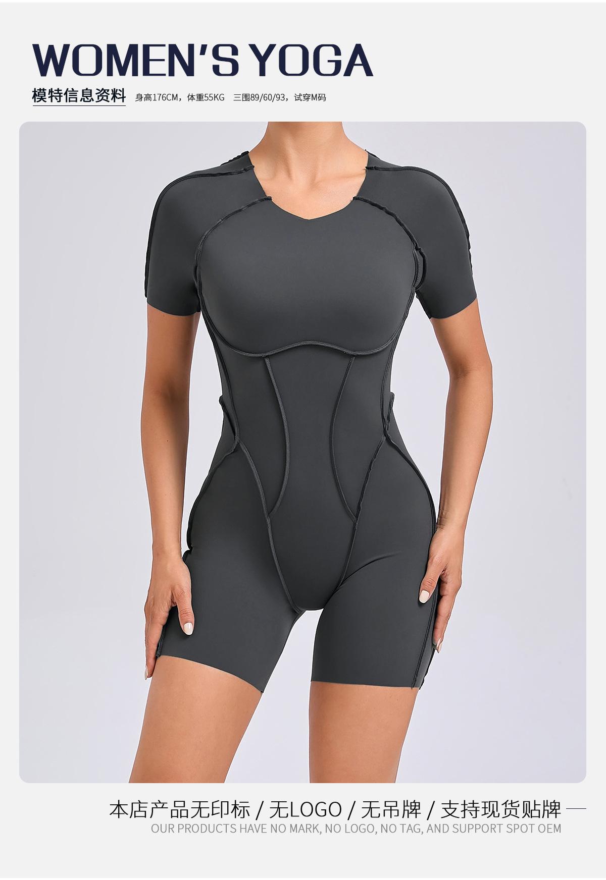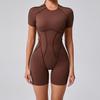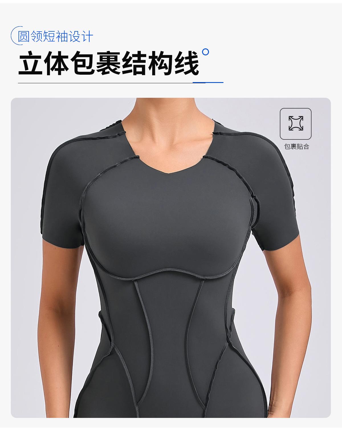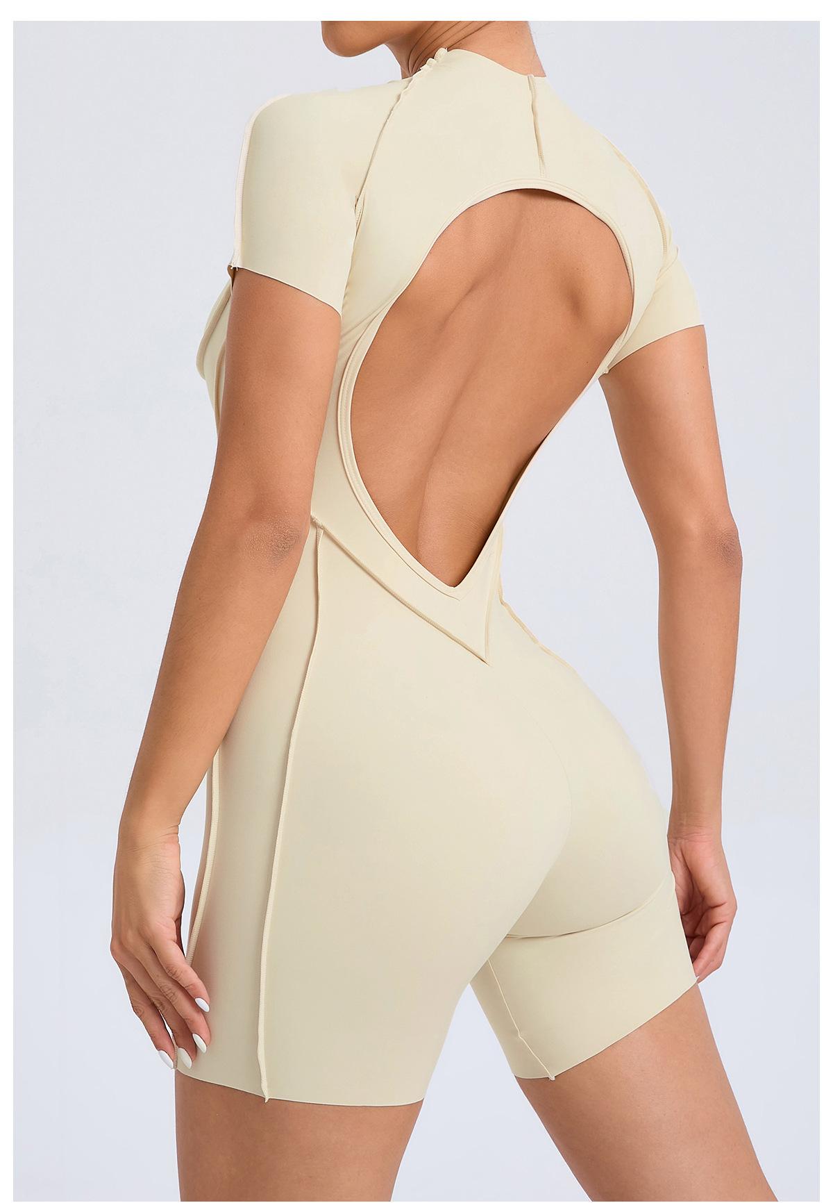 Mono Deportivo Estético Tridimensional Europeo y Americano de Una Pieza Ajustado de Manga Corta y Espalda Descubierta Ropa de Fitness