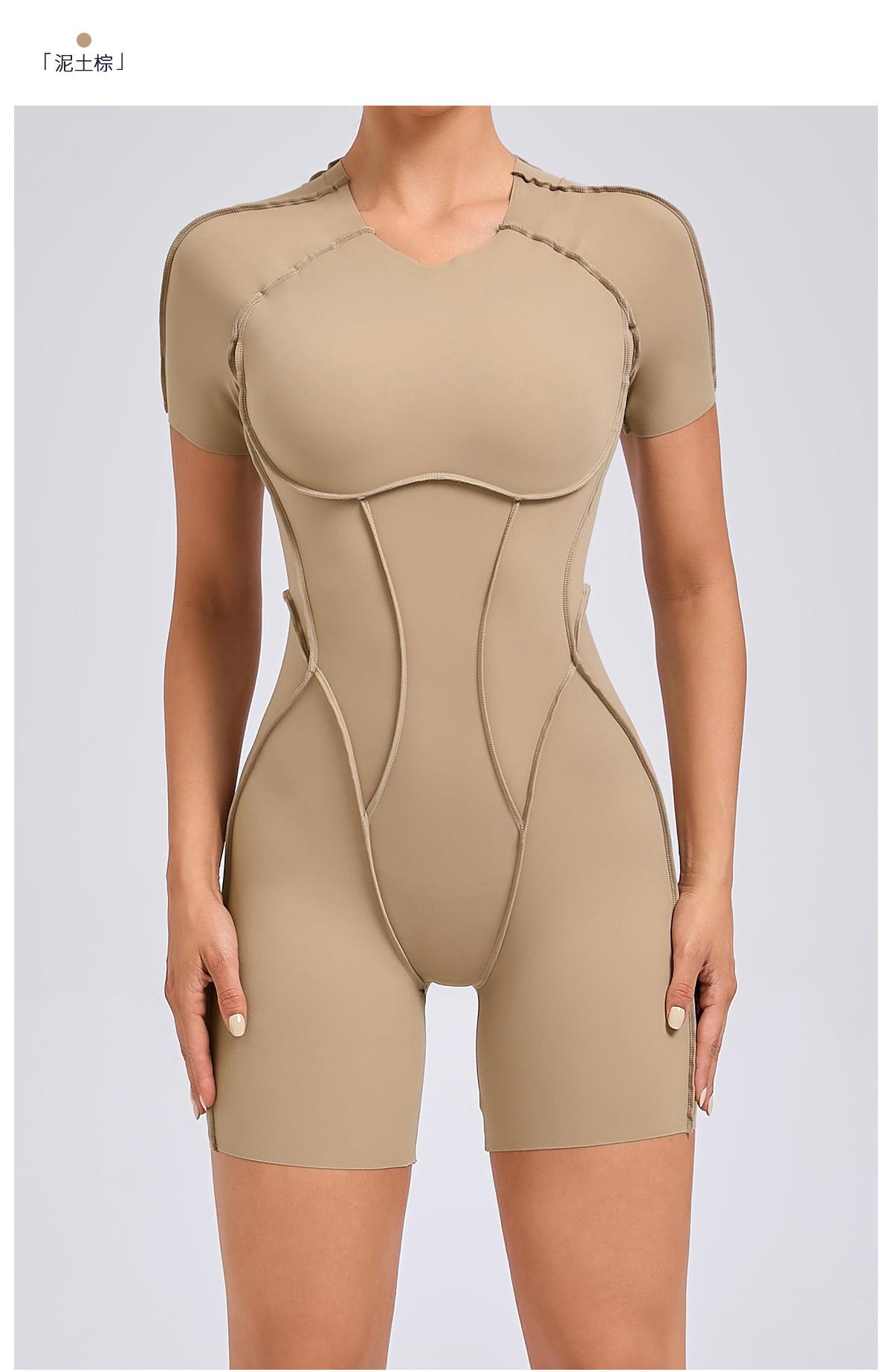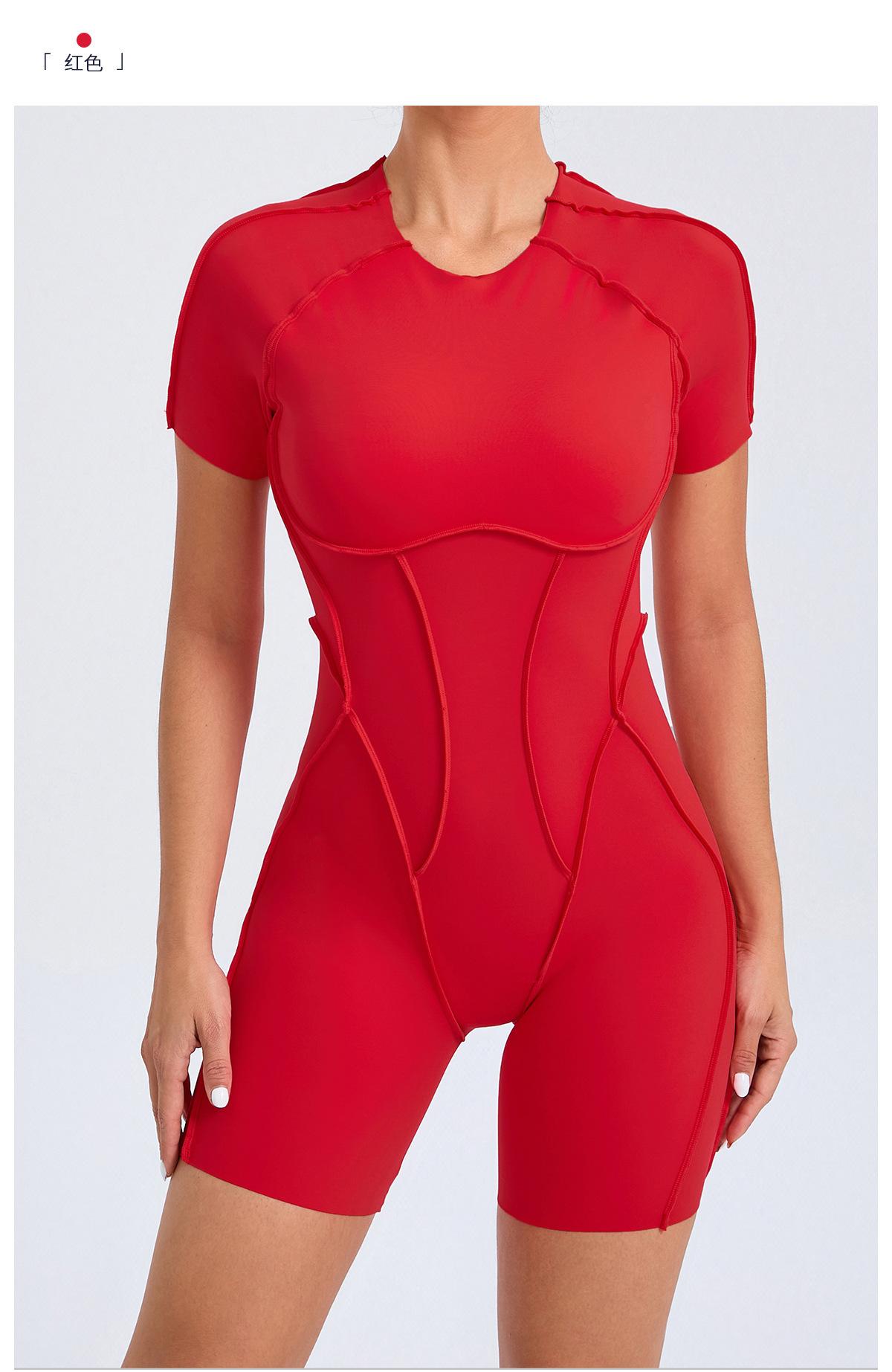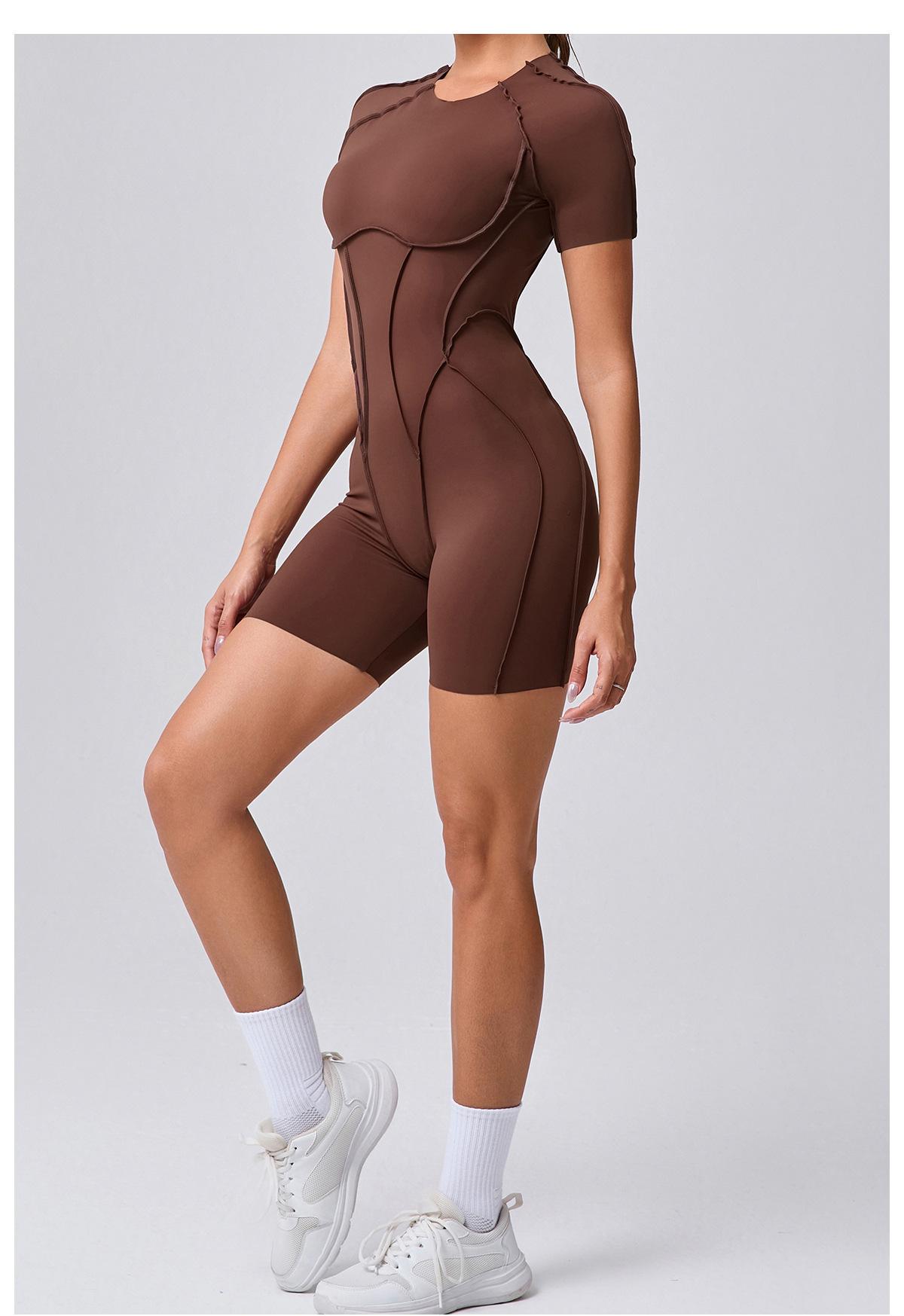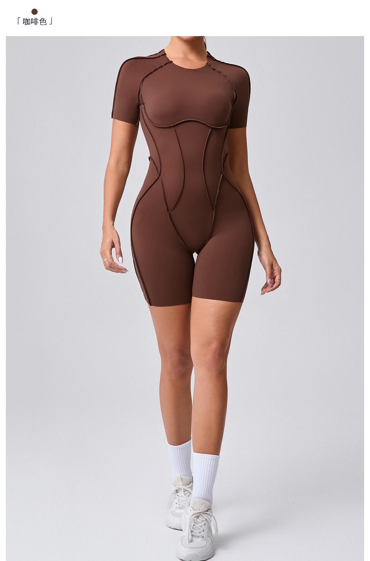 Mono Deportivo Estético Tridimensional Europeo y Americano de Una Pieza Ajustado de Manga Corta y Espalda Descubierta Ropa de Fitness