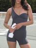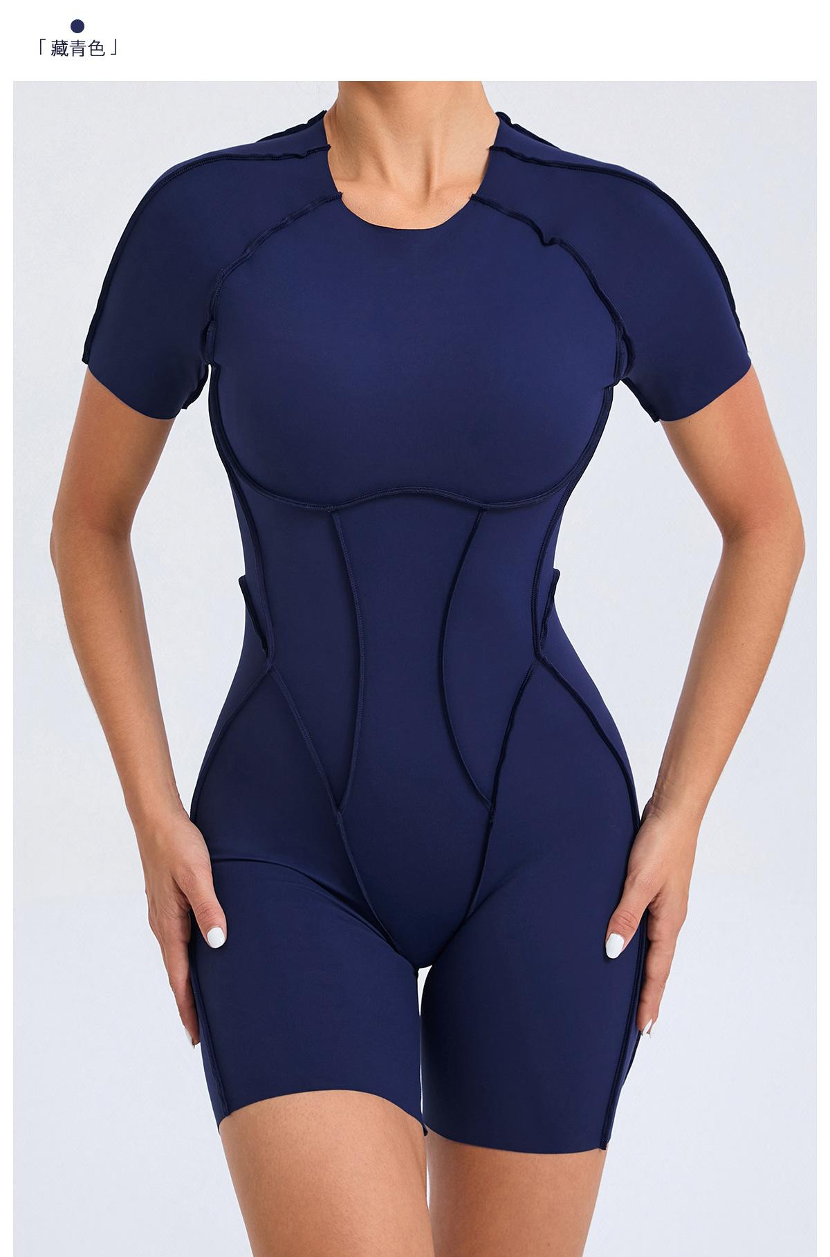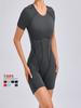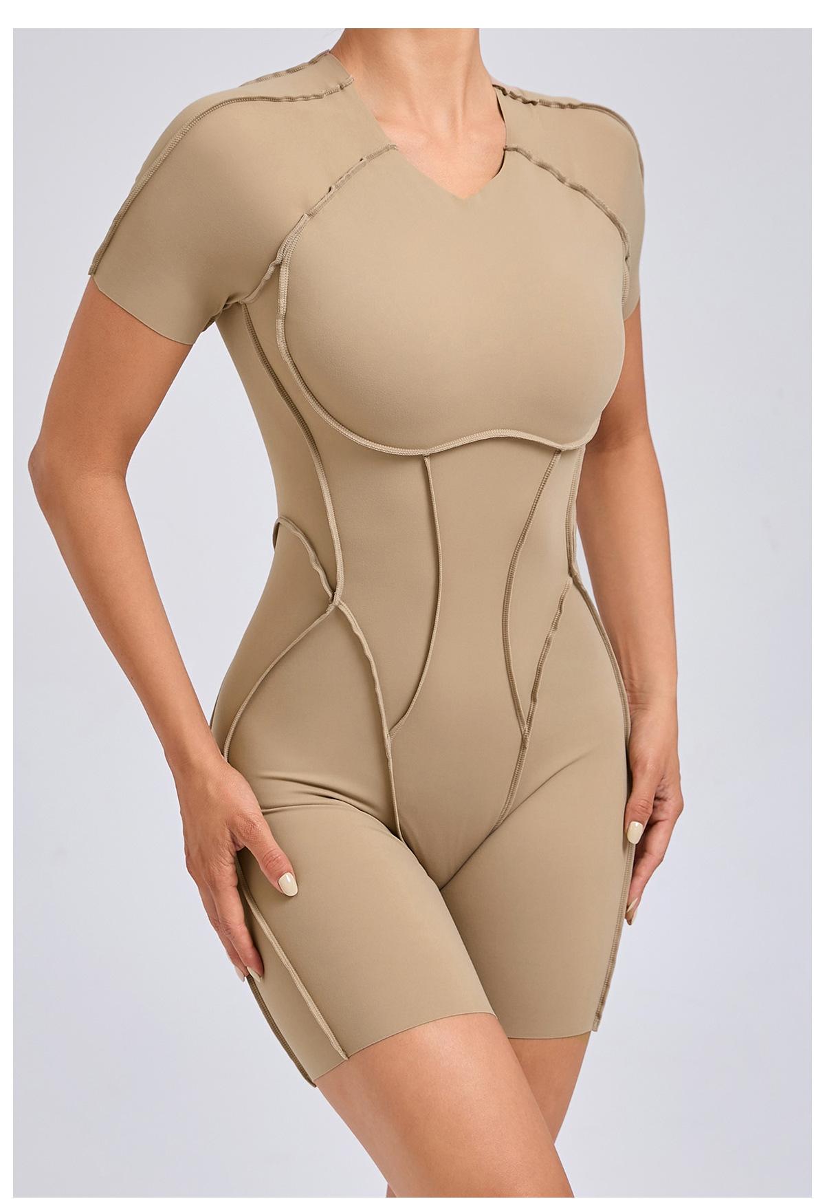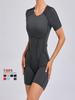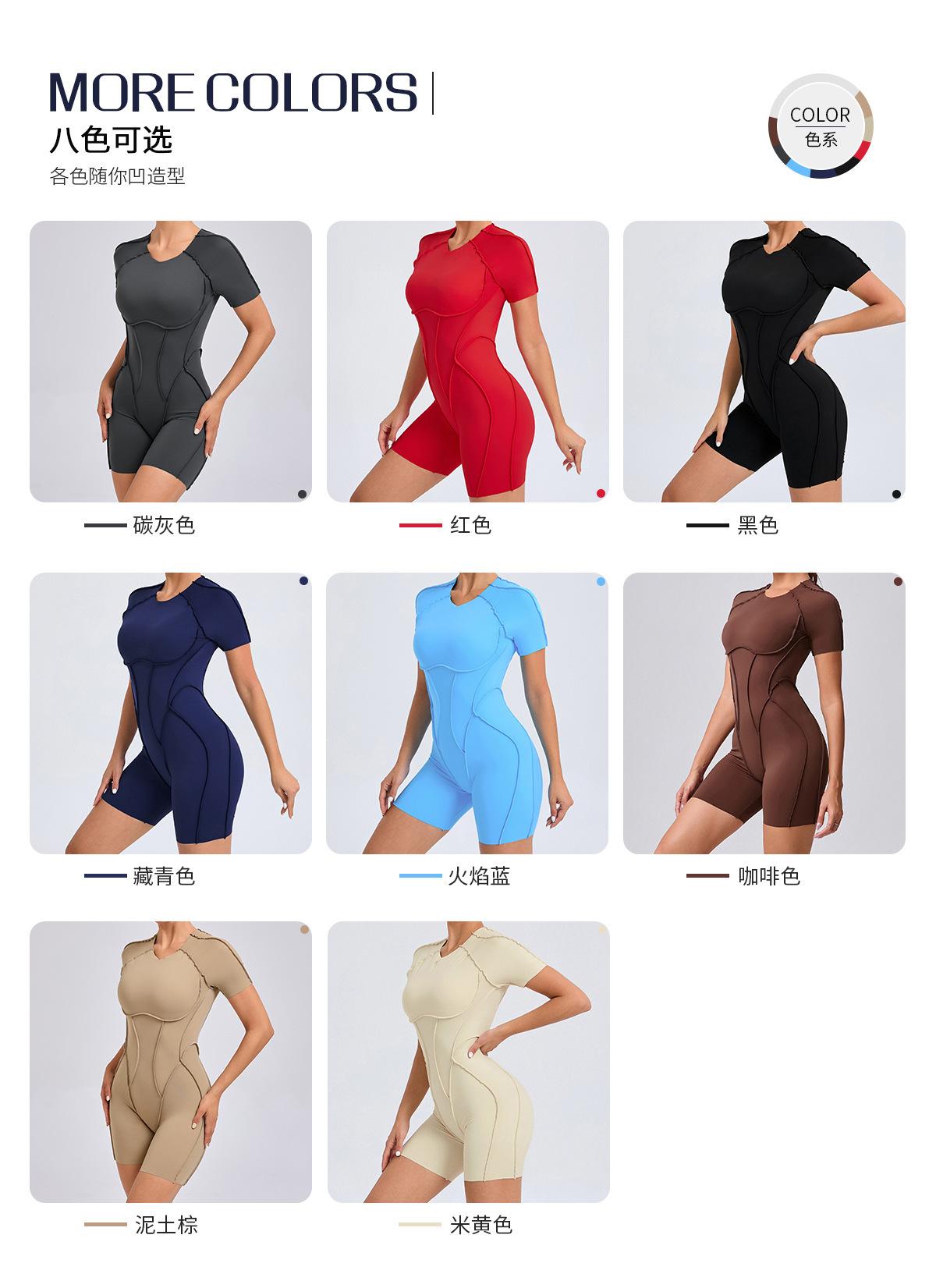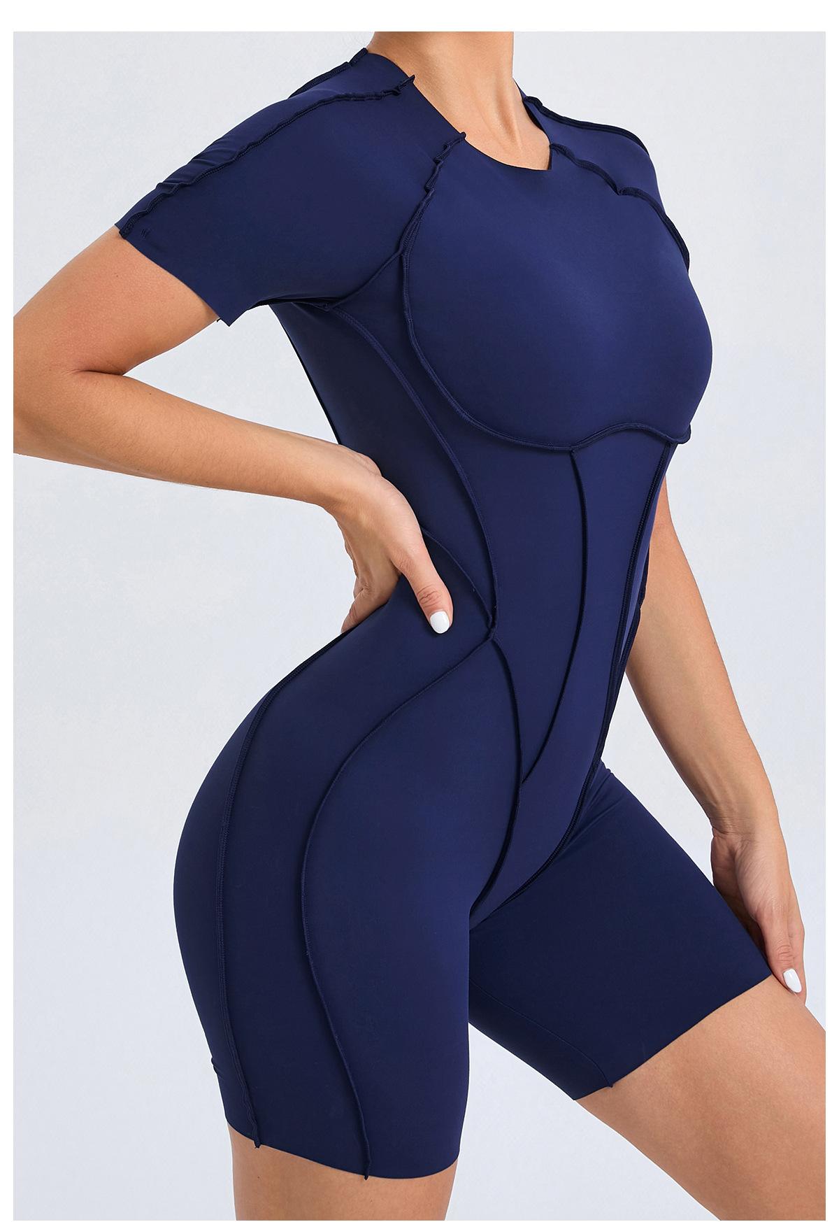 Mono Deportivo Estético Tridimensional Europeo y Americano de Una Pieza Ajustado de Manga Corta y Espalda Descubierta Ropa de Fitness