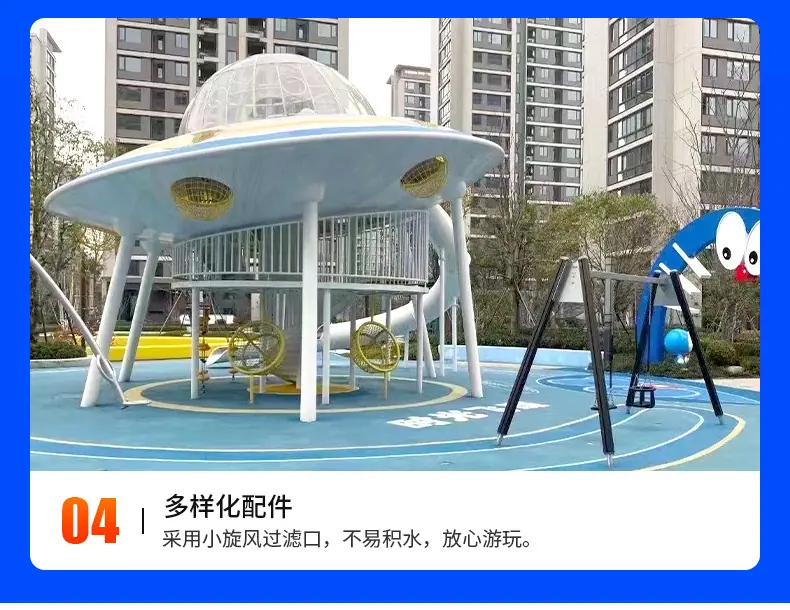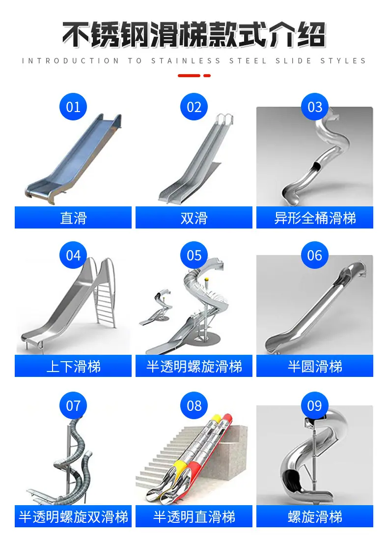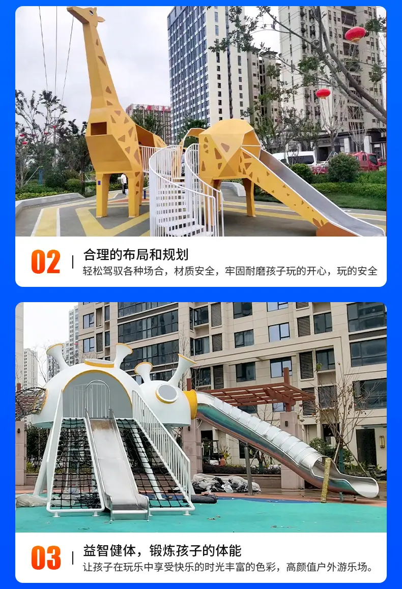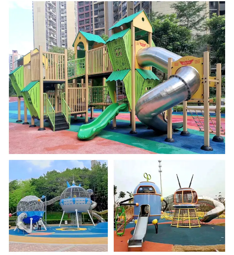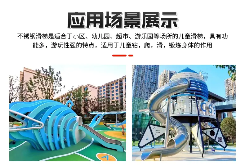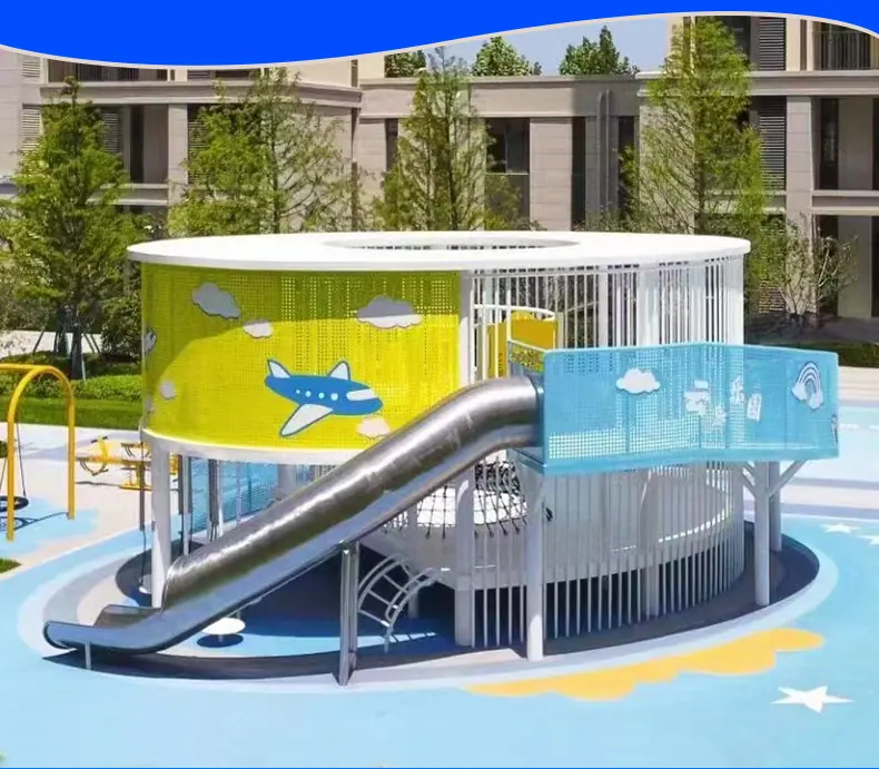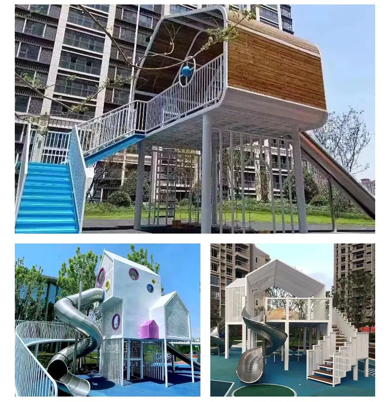 Tobogán de Acero Inoxidable para Exterior Fabricante Personalizado Plaza Comunitaria Jardín de Niños Equipo de Juego Combinado No Estándar No Motorizado