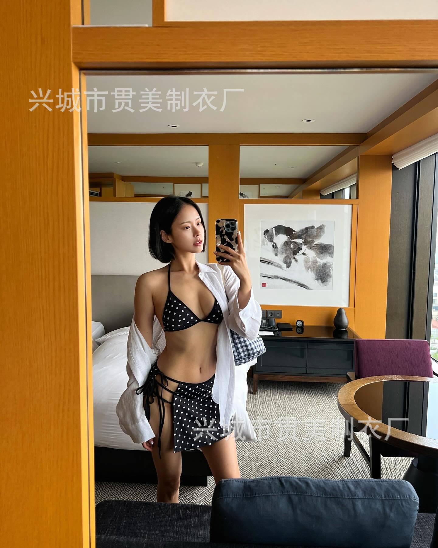 Compra Traje de Baño Dividido Estilo Coreano Nuevo Viento ins Mujeres Sexy Ajustado Lunares Adelgazante Bikini Set de Tres Piezas Traje de Baño Dividido al por mayor en Joom.pro