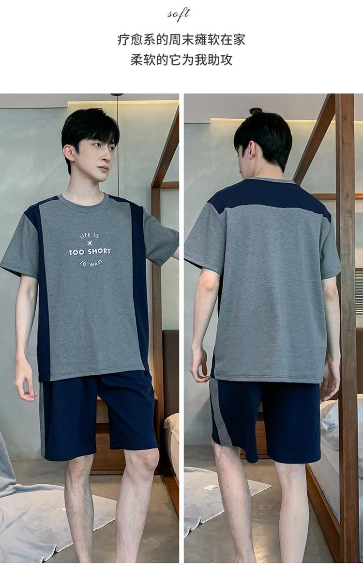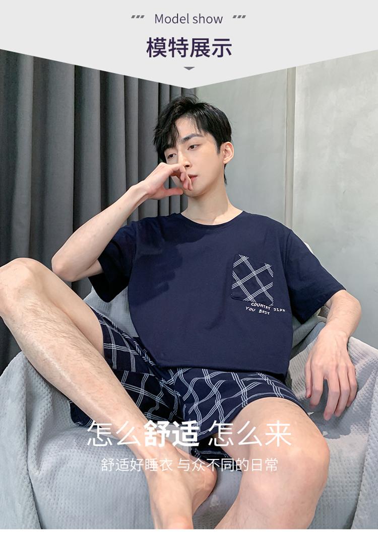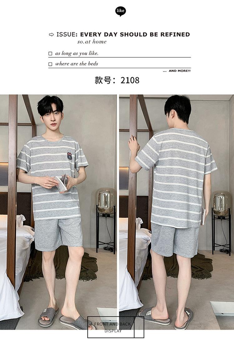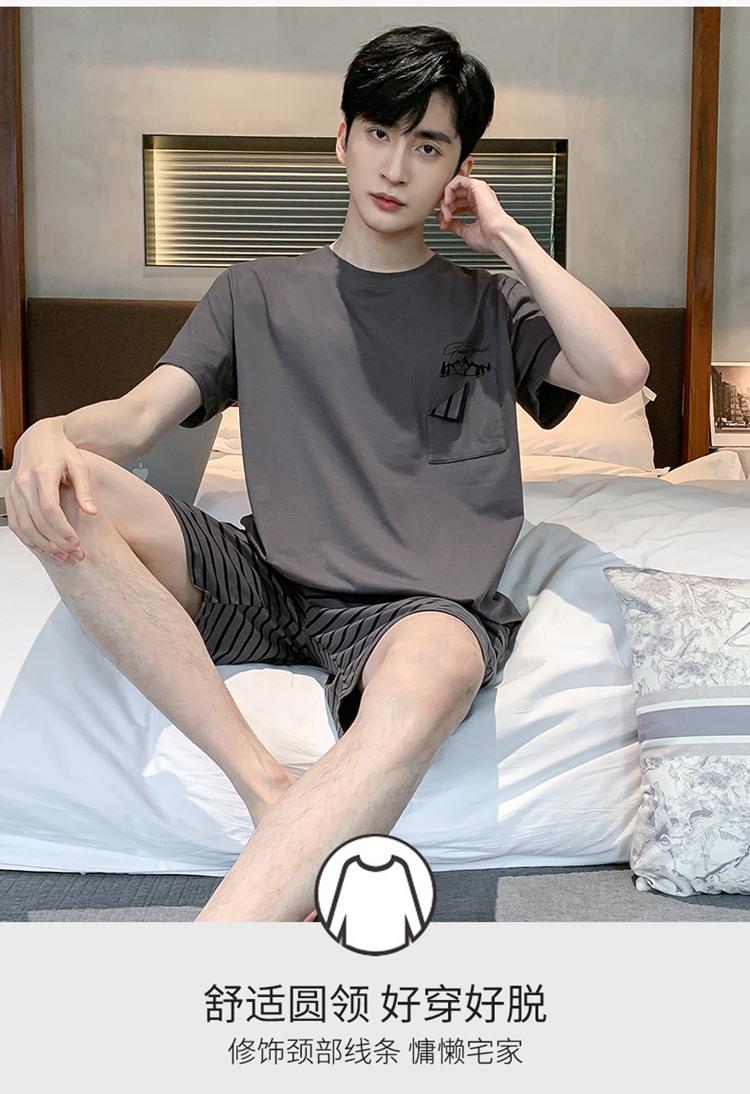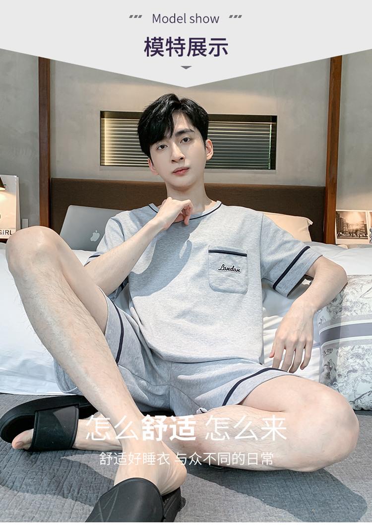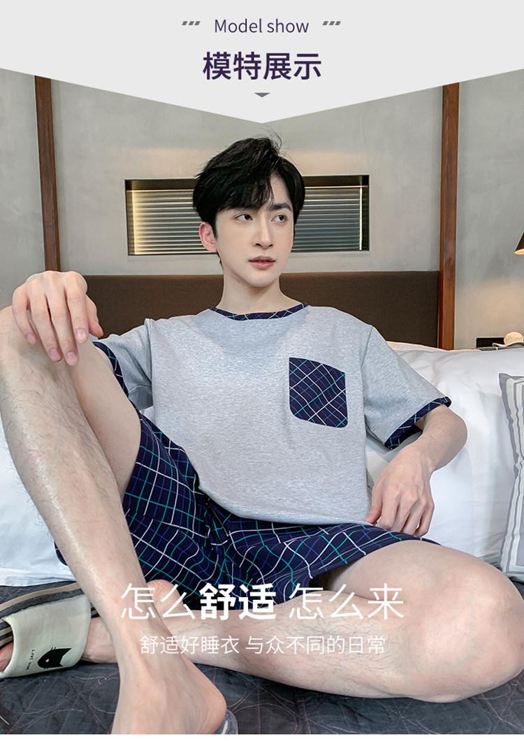 Pijamas para Hombre Algodón Manga Corta Verano Nuevo Verano Delgado Transpirable Ropa de Casa para Hombre Talla Extra Traje de Algodón