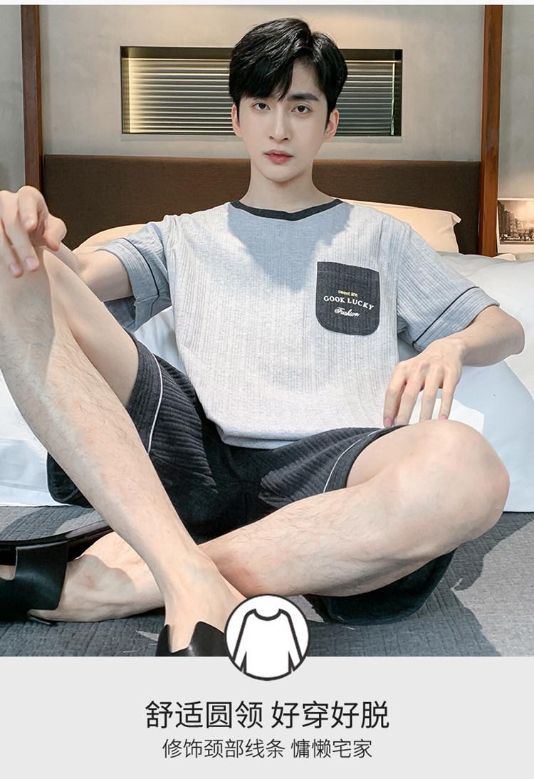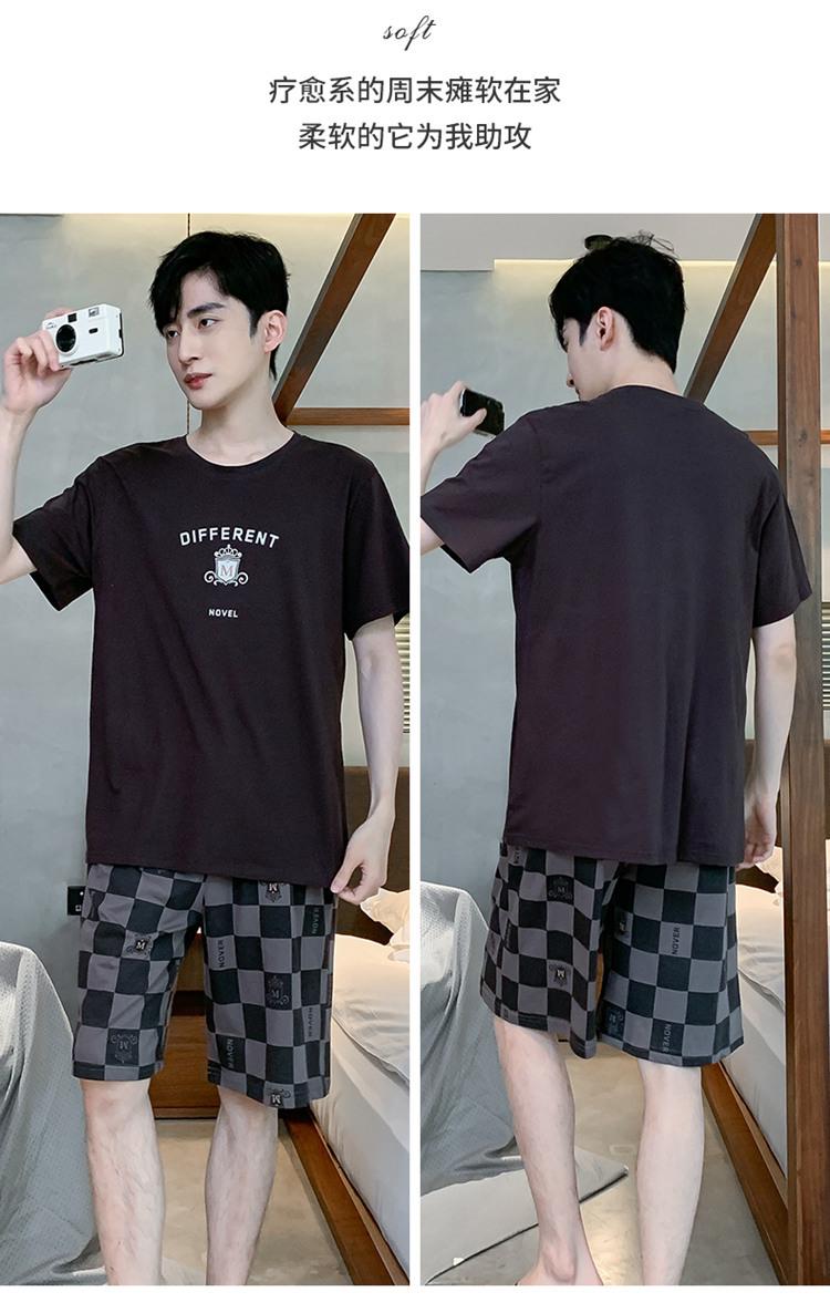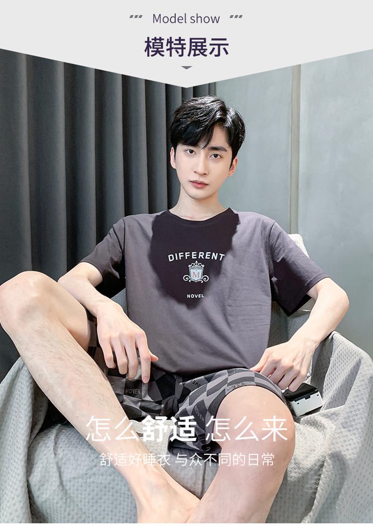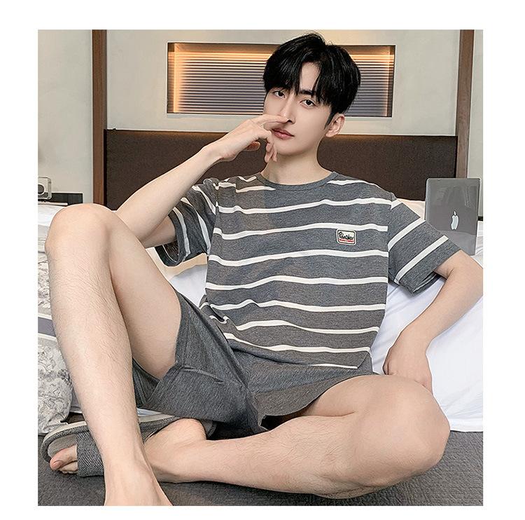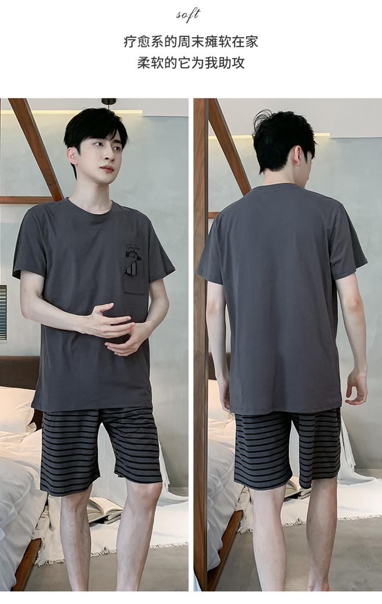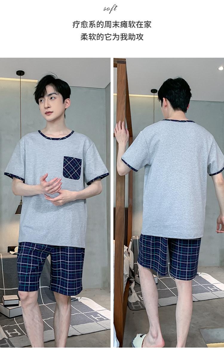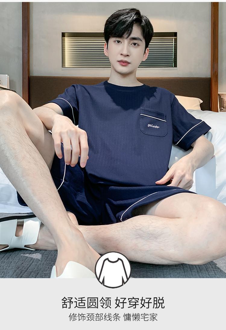 Pijamas para Hombre Algodón Manga Corta Verano Nuevo Verano Delgado Transpirable Ropa de Casa para Hombre Talla Extra Traje de Algodón