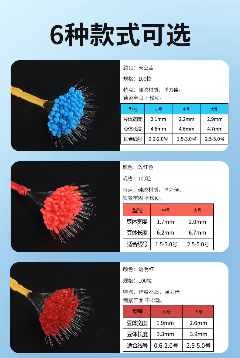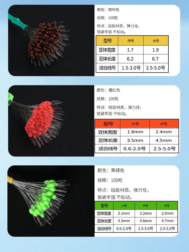 Huansheng Frijol de Bloqueo de la Puntera de la Caña Frijol Espacial de Silicona Frijol Superior de la Línea Principal Frijol de Posicionamiento de la Puntera de la Caña Frijol Tope Aparejos de Pesca Pequeños Accesorios de Pesca