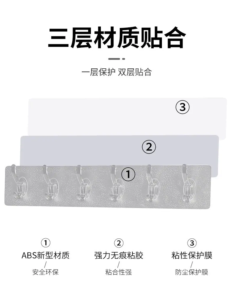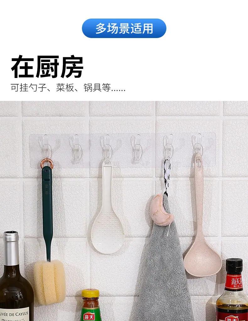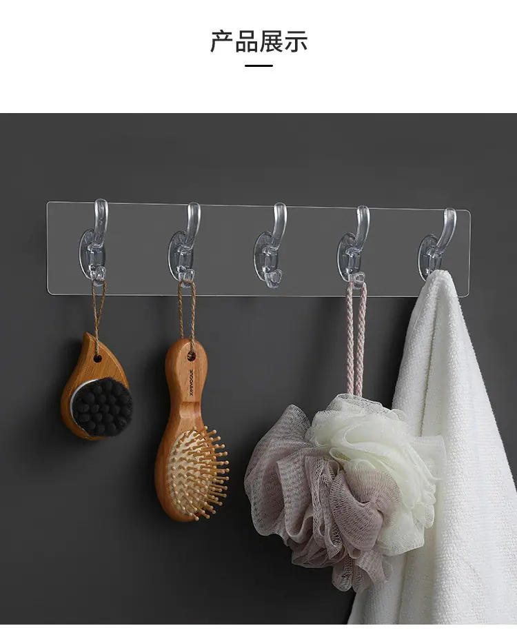 Gancho Adhesivo Fuerte Colgante de Pared de Cocina Gancho de 6 Filas Esquina Creativa Baño Gancho Sin Clavos Sin Marcas Gancho Multifuncional