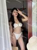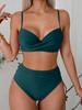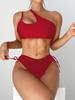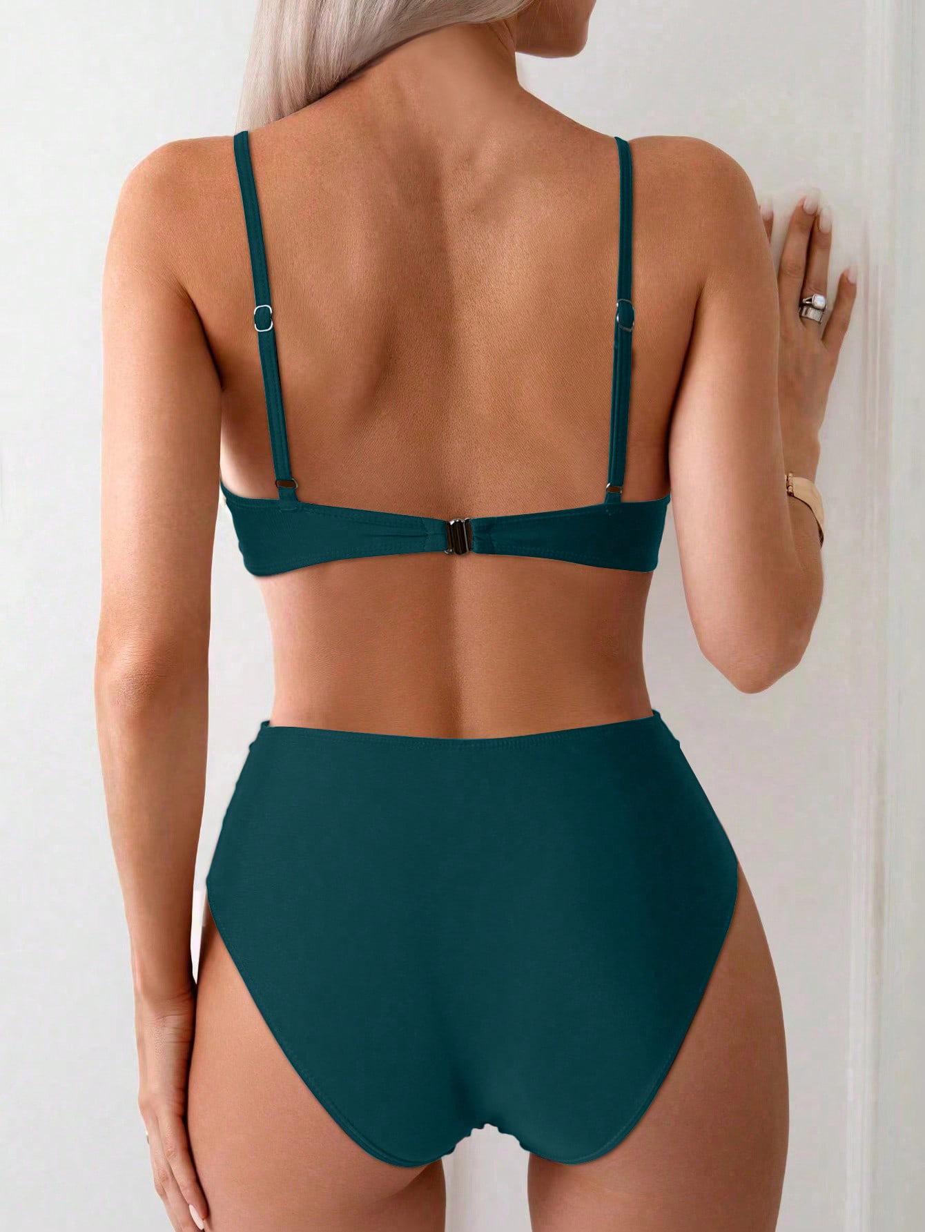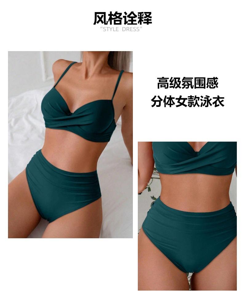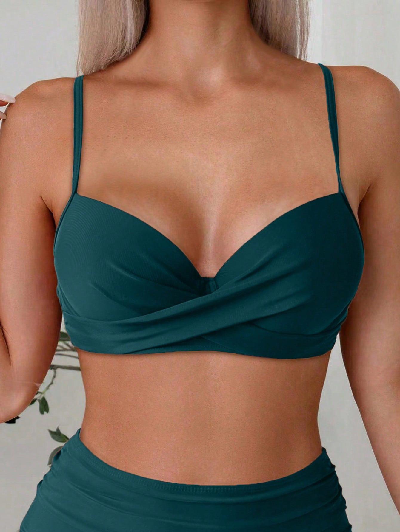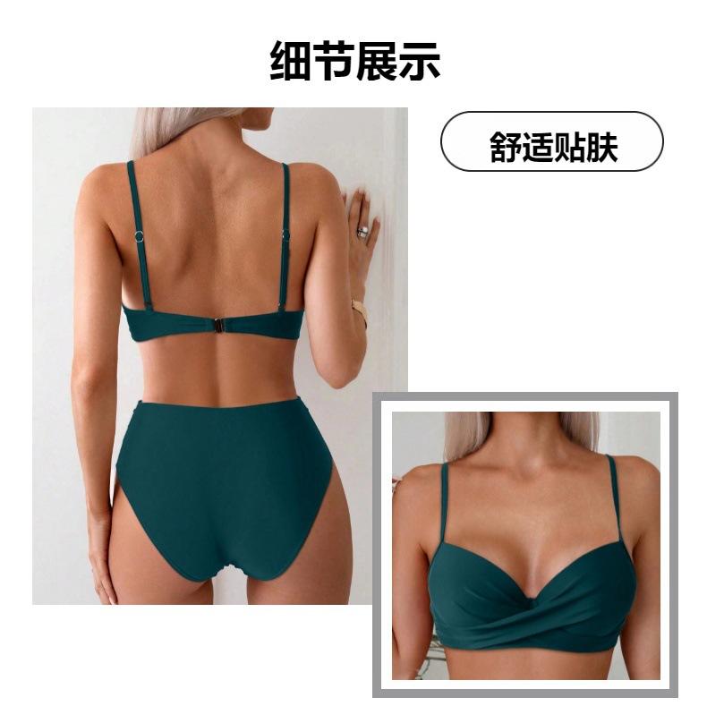 Nuevo Traje de Baño Bikini de Dos Piezas Sexy Simple para Mujer Europeo y Americano de Color Sólido con Copa Moldeada con Varilla y Tirantes Finos Cruzados