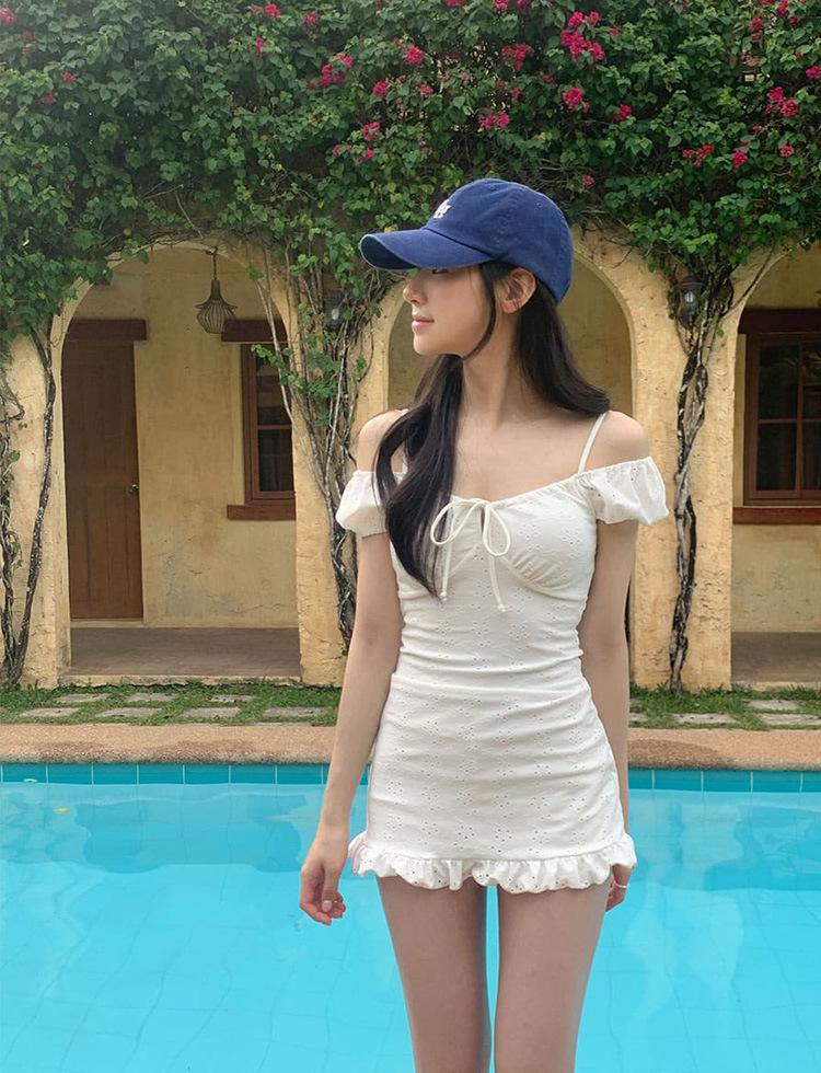 Traje de baño para Mujer 2025 Nuevo Estilo Coreano Ins de Alta Gama Chica Dulce Pecho Pequeño Una Pieza Conservador Adelgazante