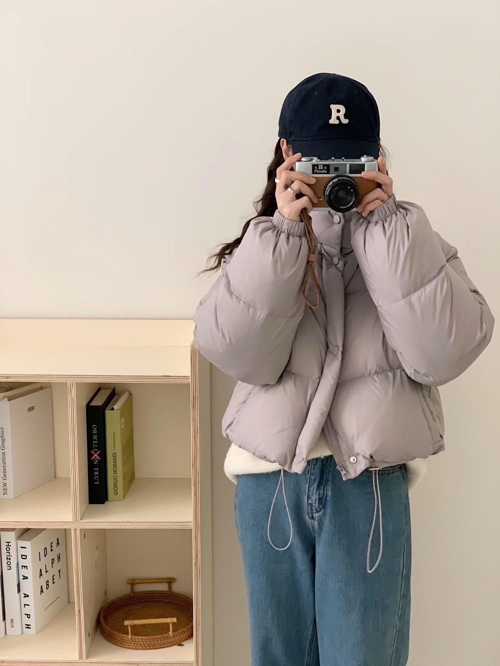 Chamarra de plumón corta estilo coreano fuera de temporada para mujer petite, nueva chamarra de algodón con plumón invierno 2025