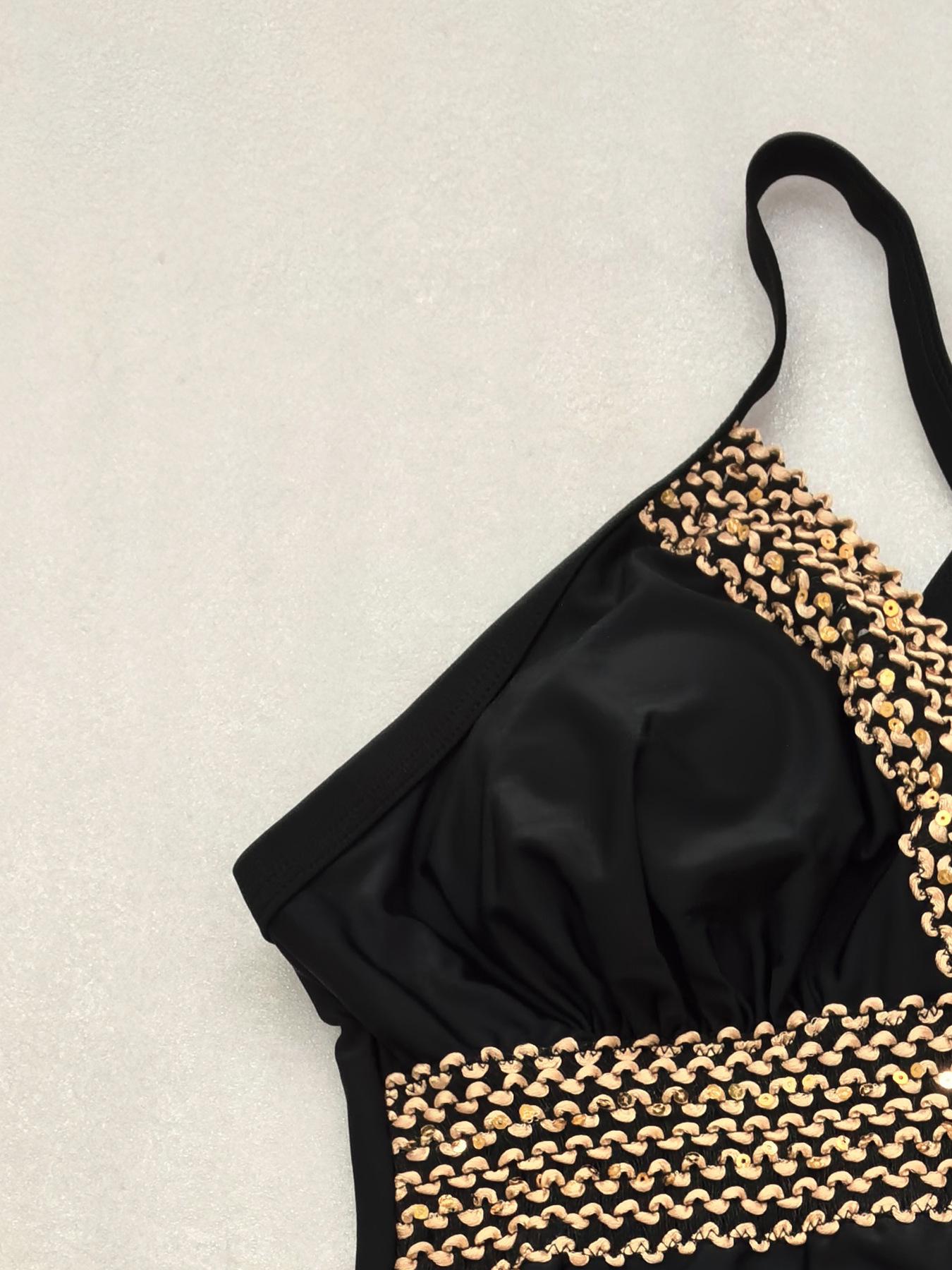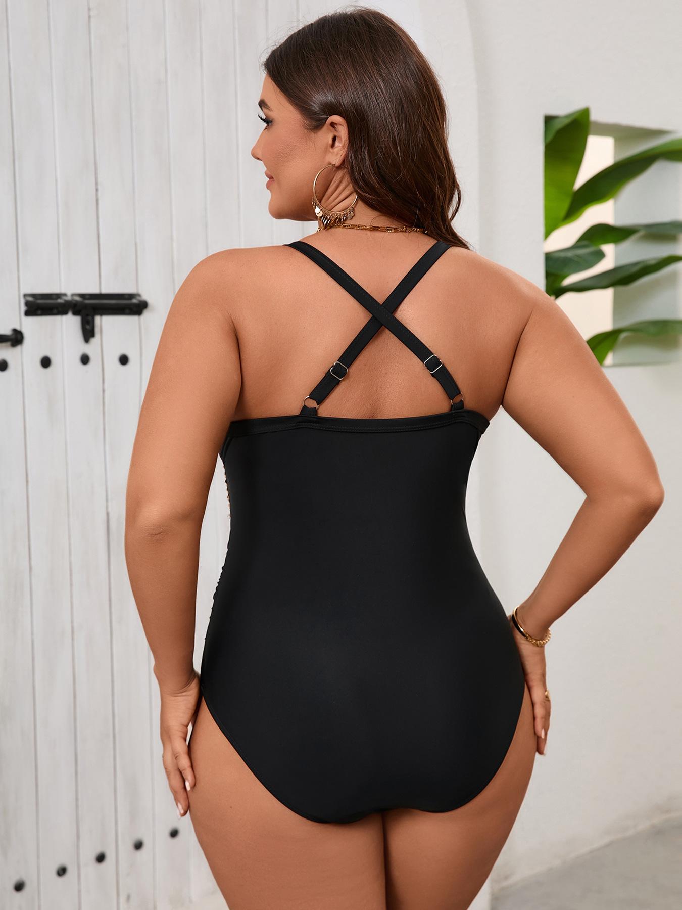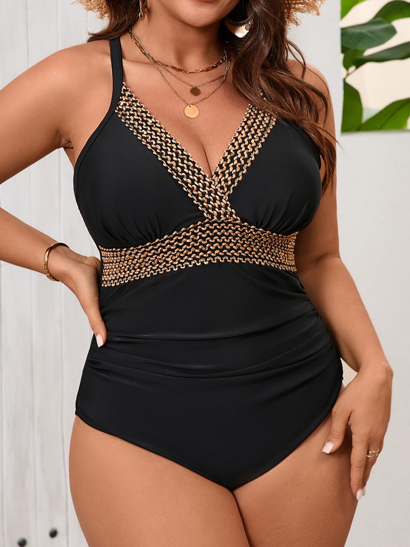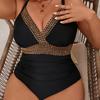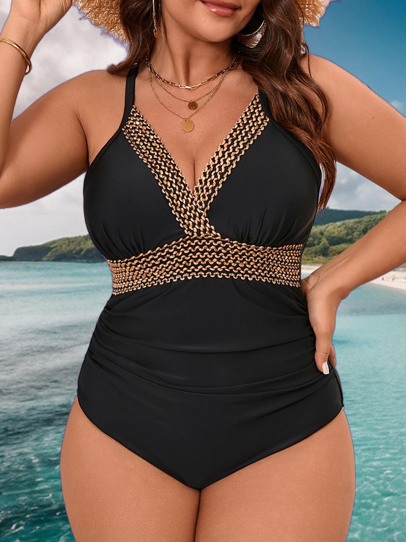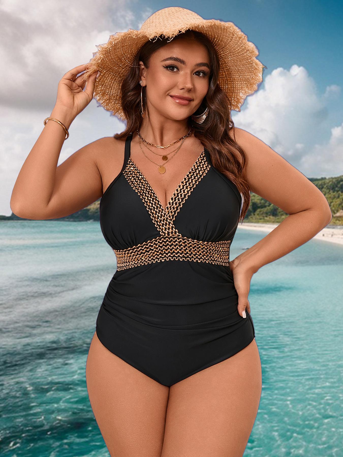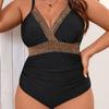 Traje de Baño Entero 2025 Nuevo Transfronterizo Europeo y Americano Talla Grande Color Sólido Patchwork para Mujer Sexy sin Espalda Bikini de Playa para Mujer