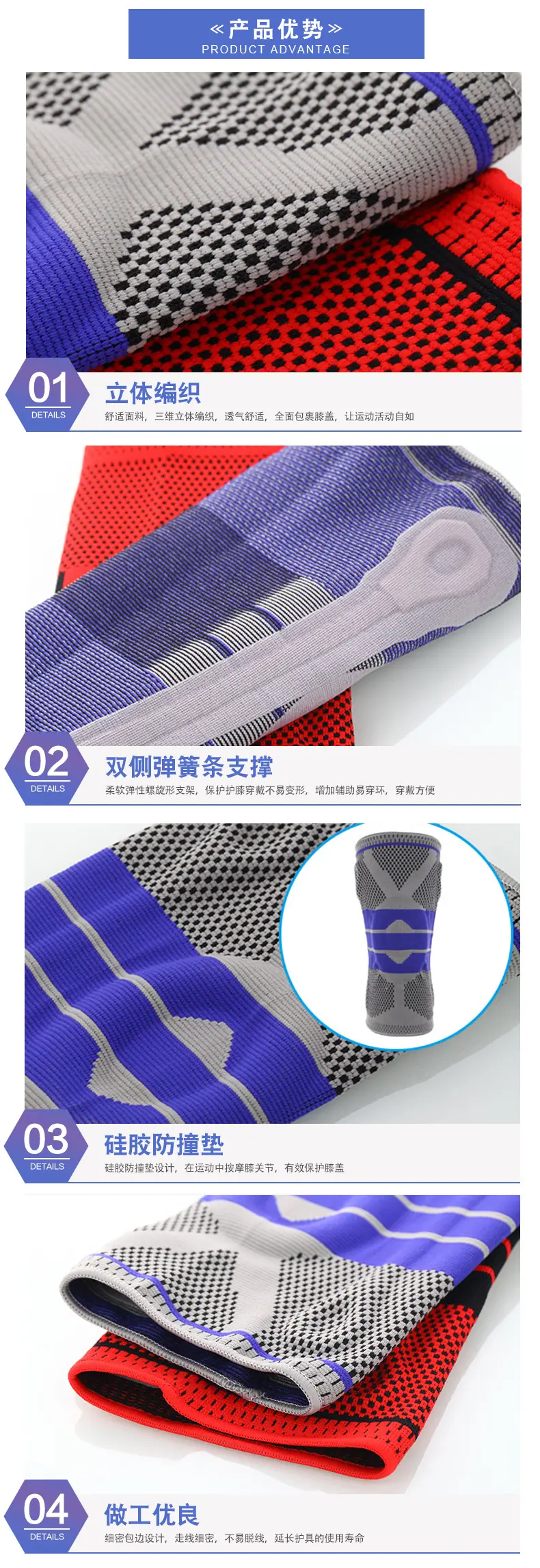 Rodilleras deportivas de silicona anticolisión con soporte de resorte, rodilleras de baloncesto para montar, montañismo, correr, fitness, deportes al aire libre