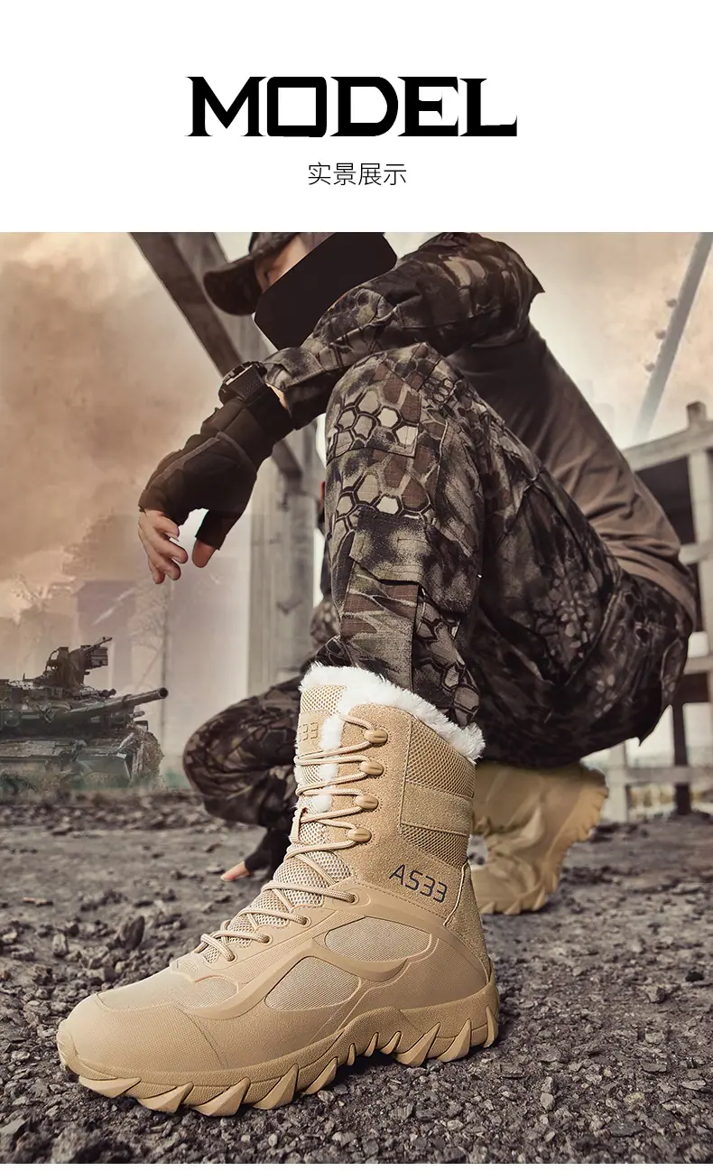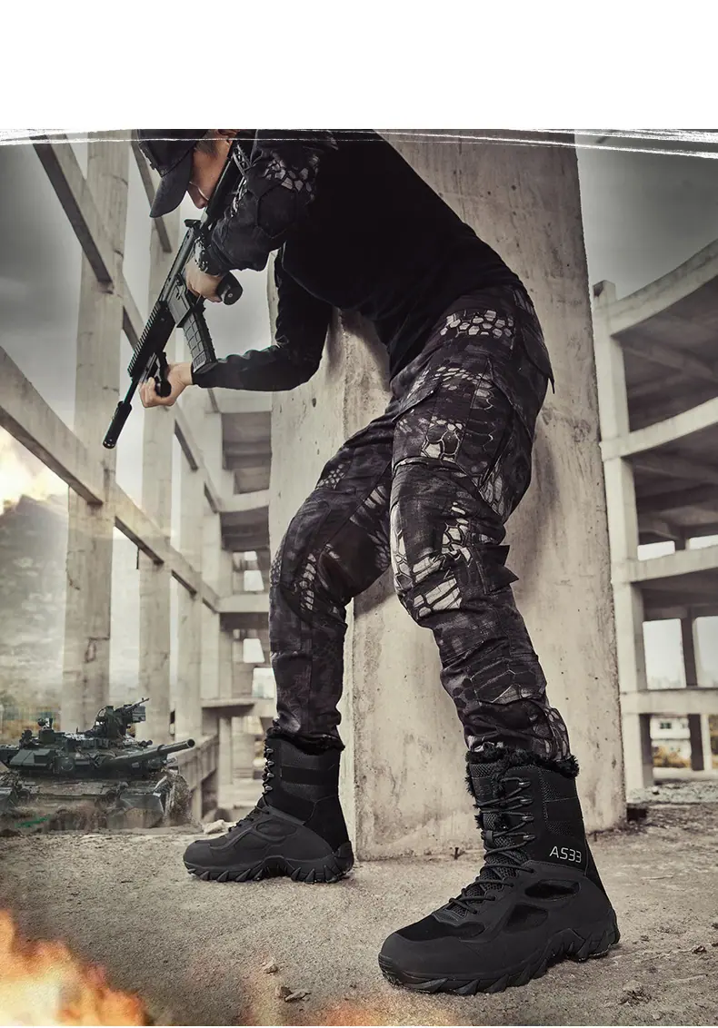 Invierno Más Terciopelo Cálido A Prueba de Frío Exterior Senderismo Deportes Escalada Entrenamiento Táctico Botas para Hombre Camping Venta Caliente Transfronteriza Venta al por Mayor