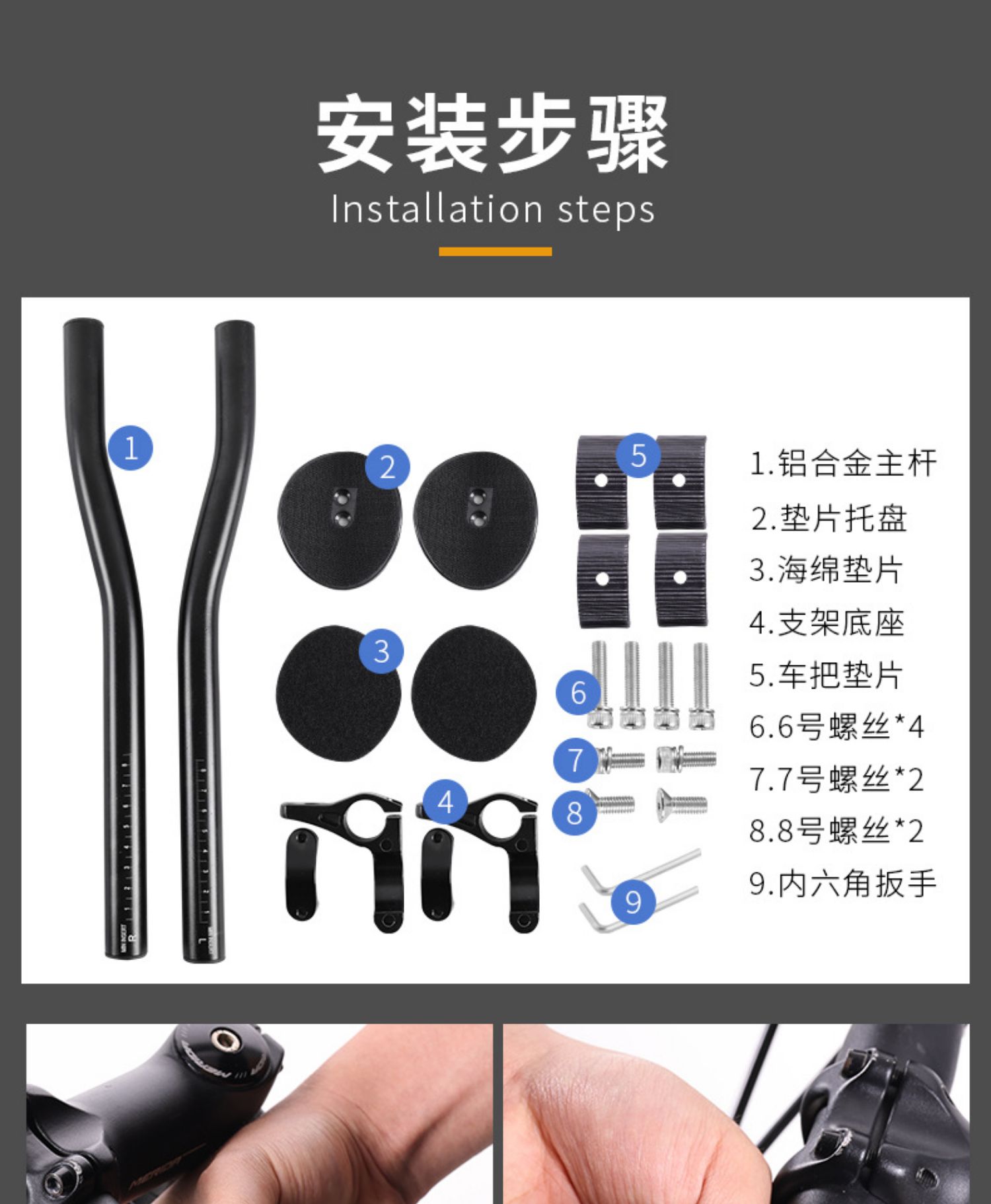 Consejos: Al apretar los tornillos, sea moderado. Si el manillar es delgado, puede usar una calza para rellenarlo.¡No apriete demasiado los tornillos para evitar que se agriete el anillo fijo del asiento!Si la instalación no se realiza correctamente, por favorManejo adecuado