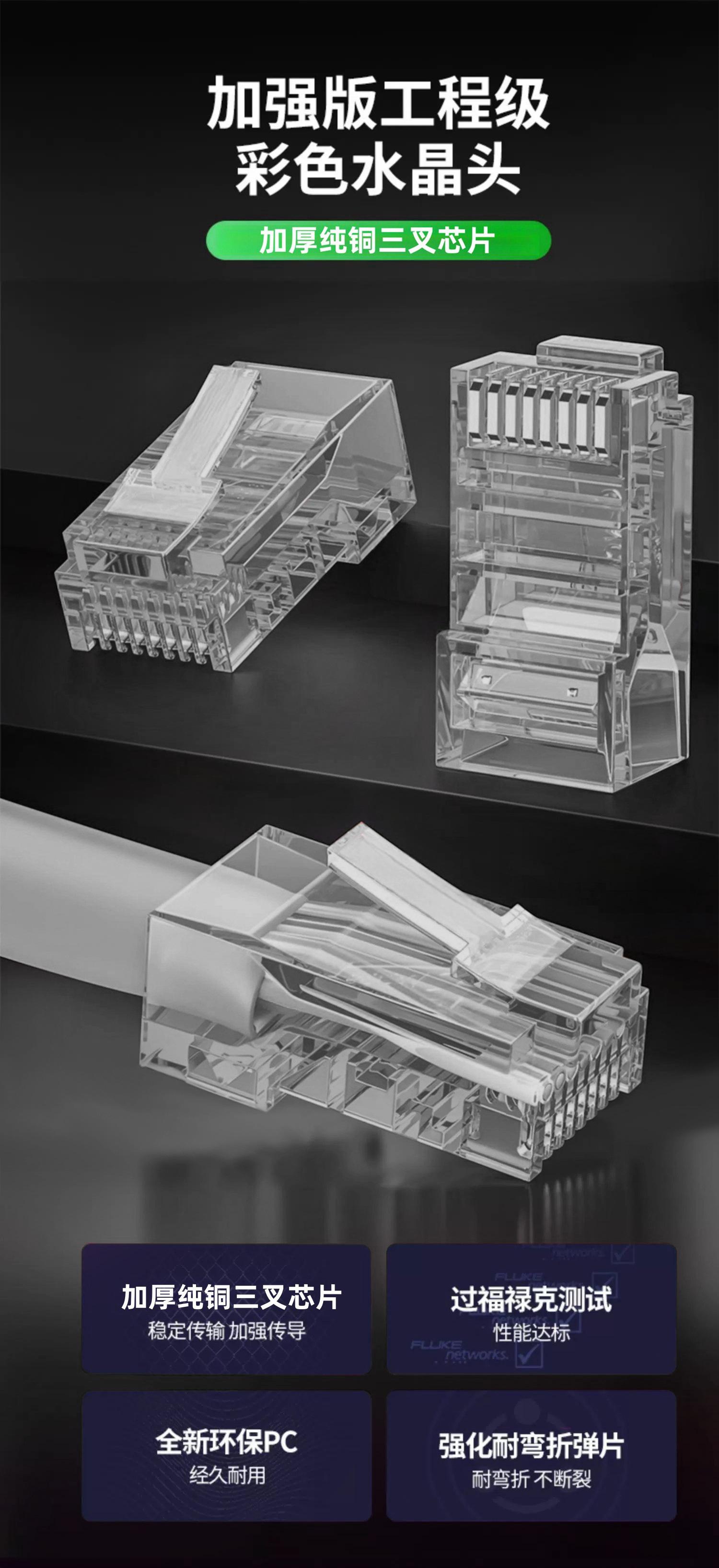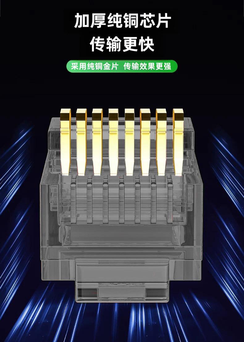 Cat6 UTP RJ45 Super Seis No Apantallado Cobre Puro Trigeminal Oro 8P8C Gigabit Negro Cabezal Cristal de Red