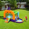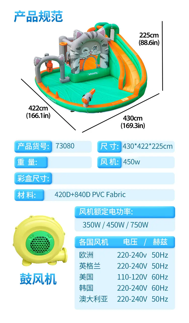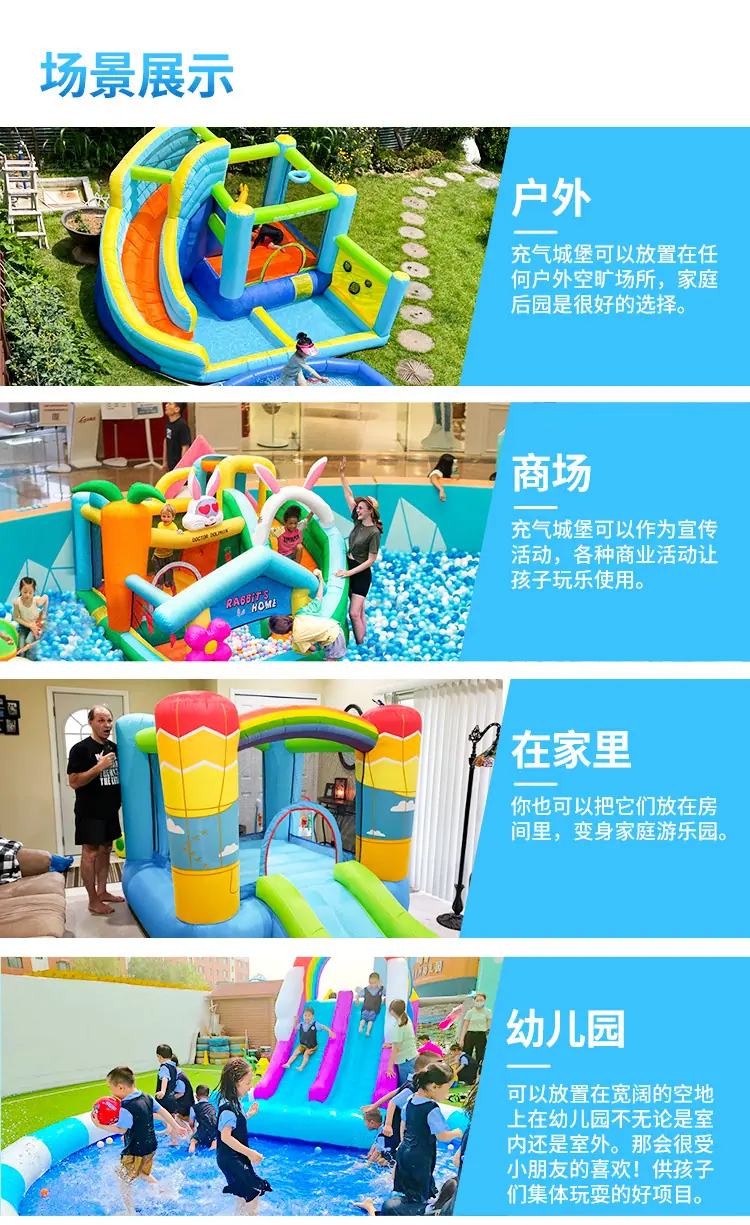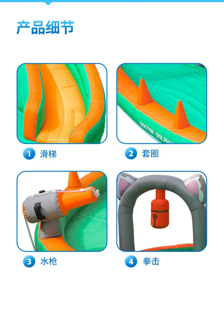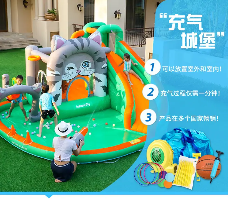 Castillo Inflable de Venta Caliente Parque Infantil Pequeño para Niños Castillo Inflable con Spray de Agua Elemento Gato Trampolín Inflable con Tobogán para el Hogar
