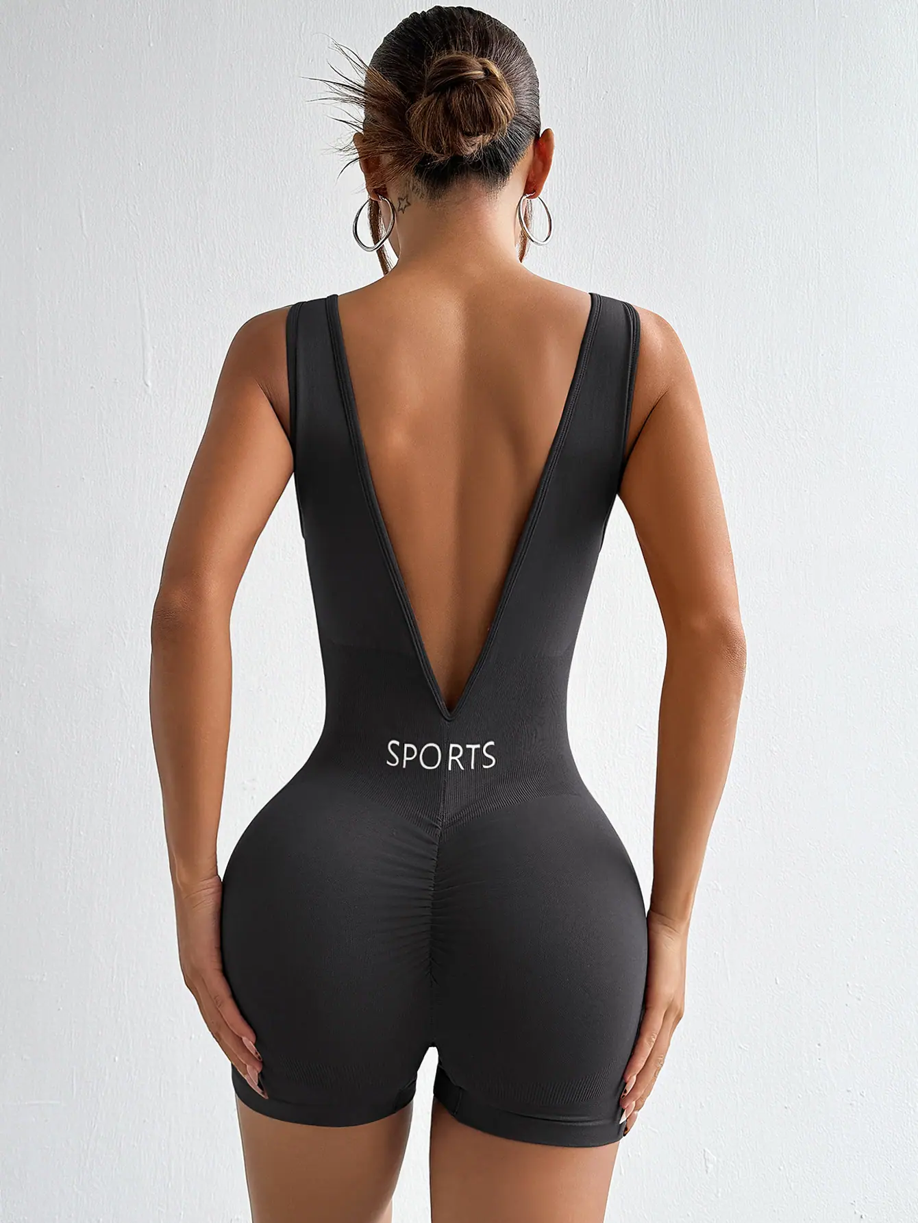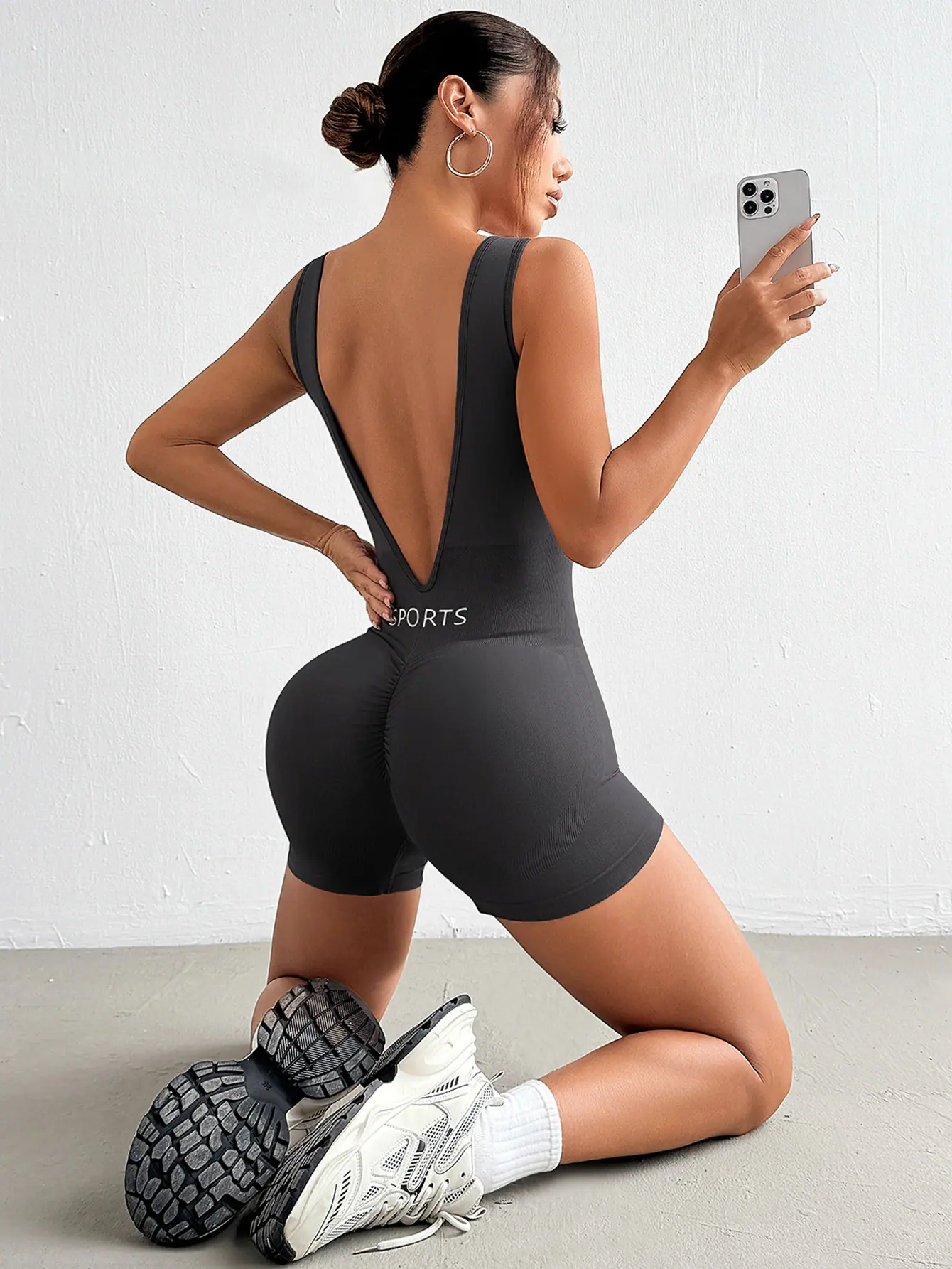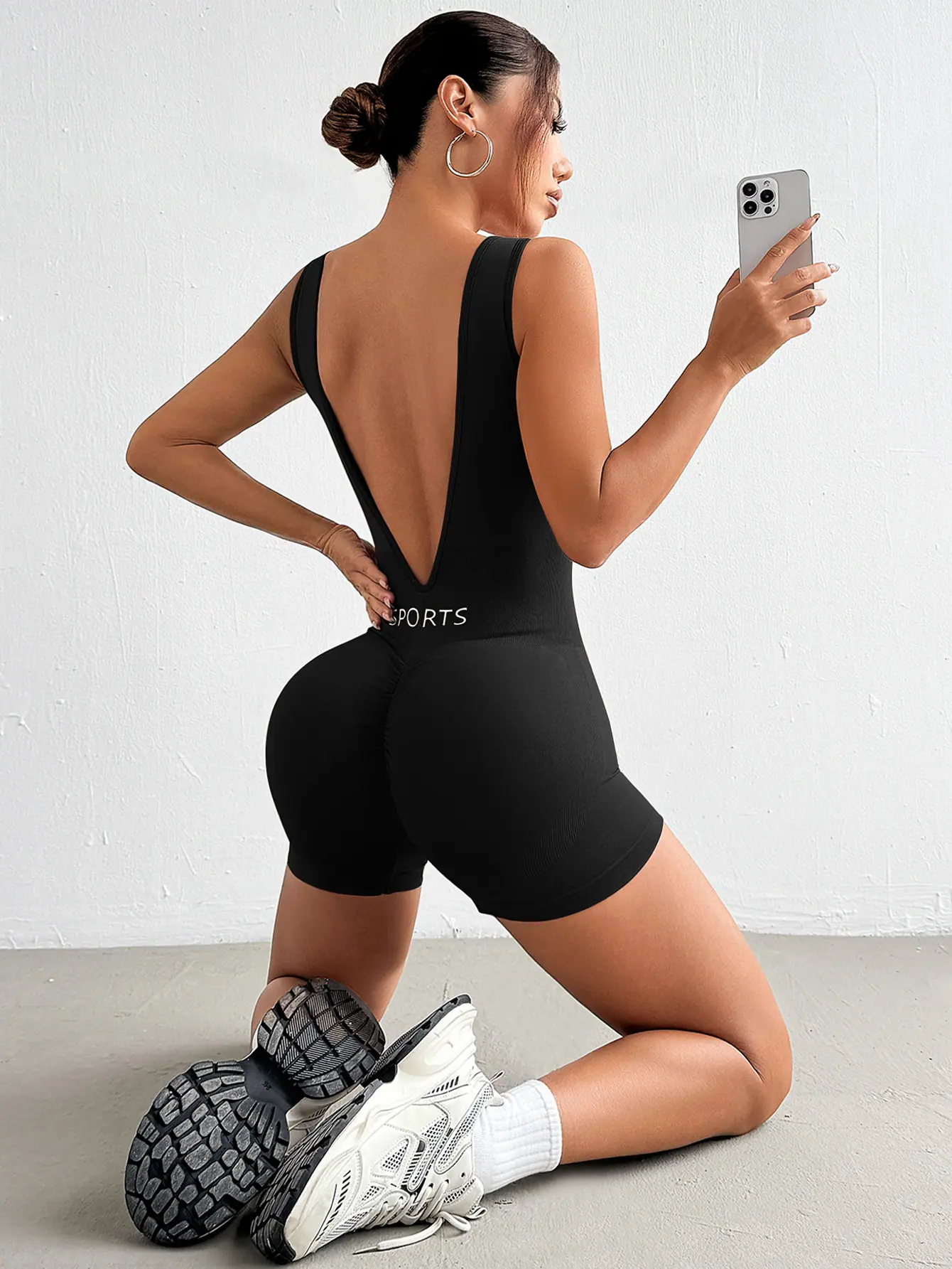 Traje de yoga sin costuras europeo y americano transfronterizo para mujer, sensación nude, ajustado, hermoso mono de espalda, alta elasticidad, levanta glúteos, traje de fitness de una pieza