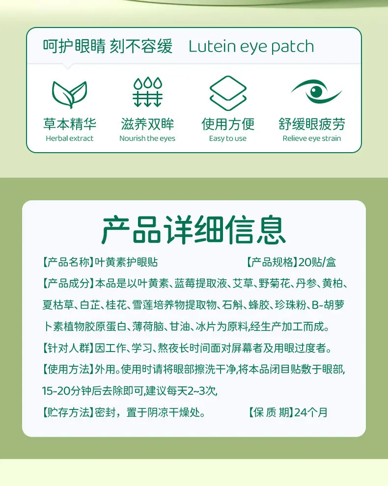 Lutein eye patch 20 patches/box, Moisturizing eye protection patch 30 patches/box