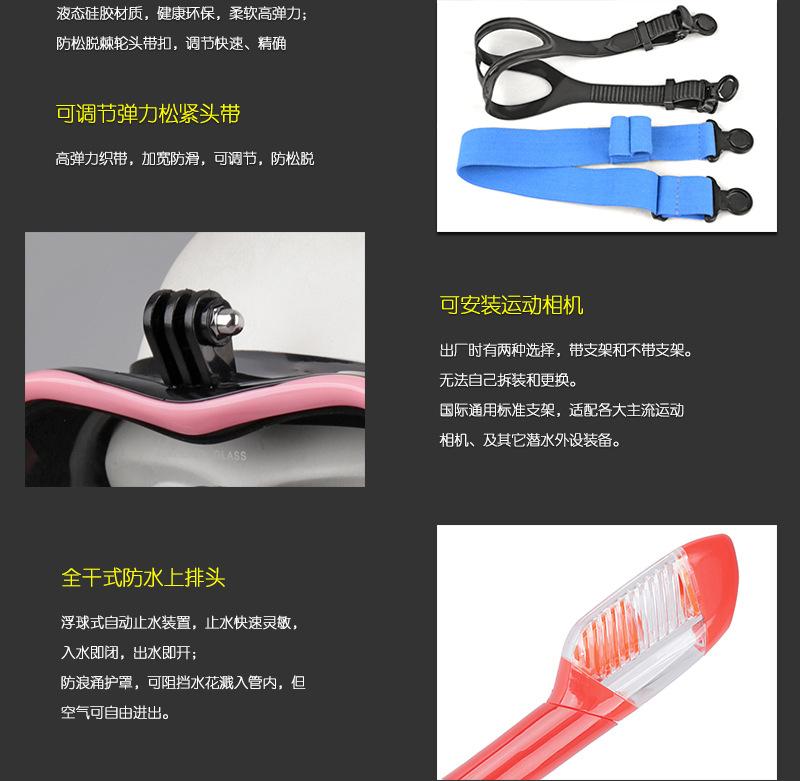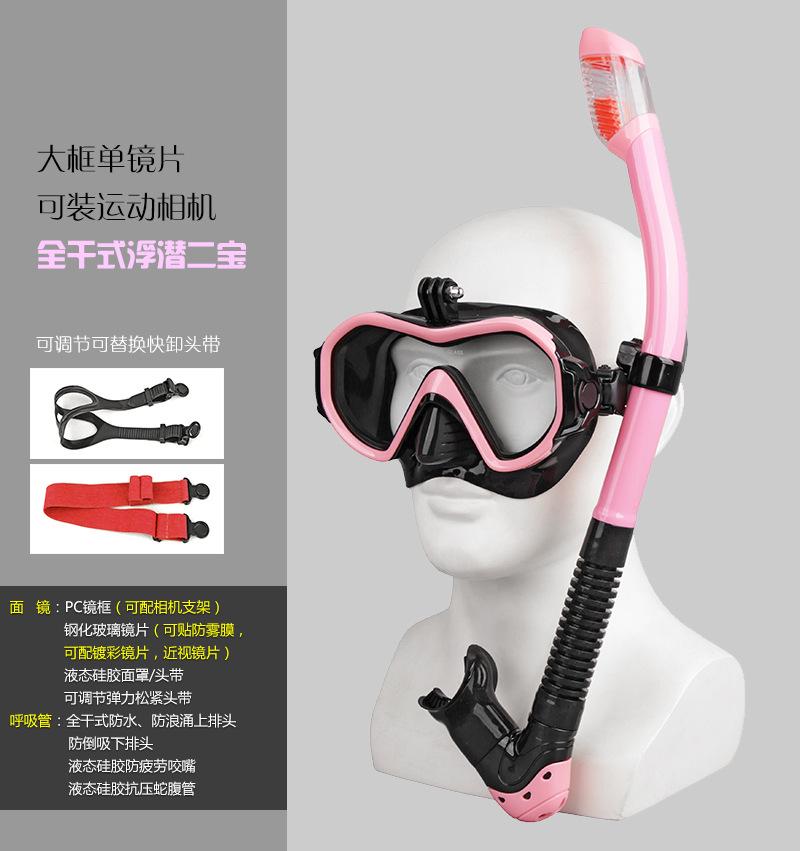 Snorkel Erbao para Adulto Totalmente Seco de Silicona Líquida Antivaho Vidrio Templado Lente Única Gafas de Buceo Set de Snorkel