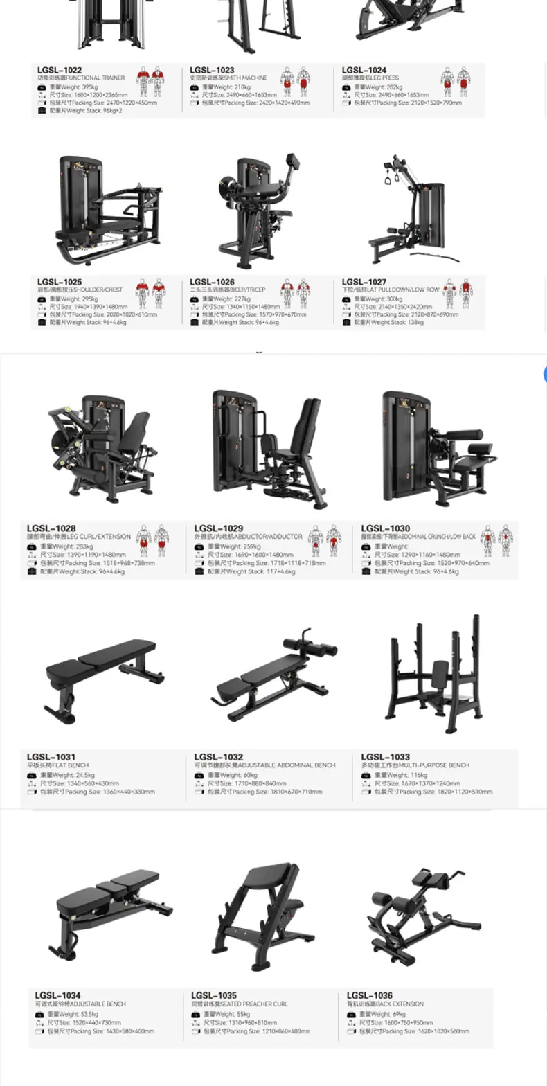 Equipo de Fuerza Life Fitness Serie Completa Equipo de Gimnasio Press de Pecho Sentado Recomendado Jalón Alto Remo Bajo Remo Mariposa