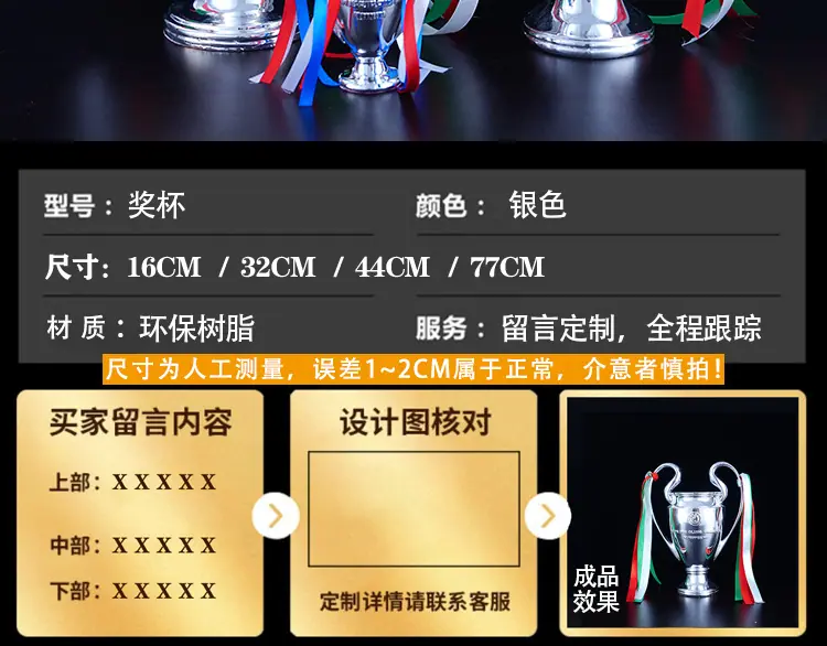 Trofeo de la Liga de Campeones Orejona Paris Saint-Germain Messi Real Madrid Aficionados Fútbol Periférico Decoración Regalos Edición para Aficionados