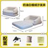 Luxury Flocked Sofa Bed Cream Color Without Air Pump, Luxury Flocked Sofa Bed Cream Color + Foot Pump, Luxury ...