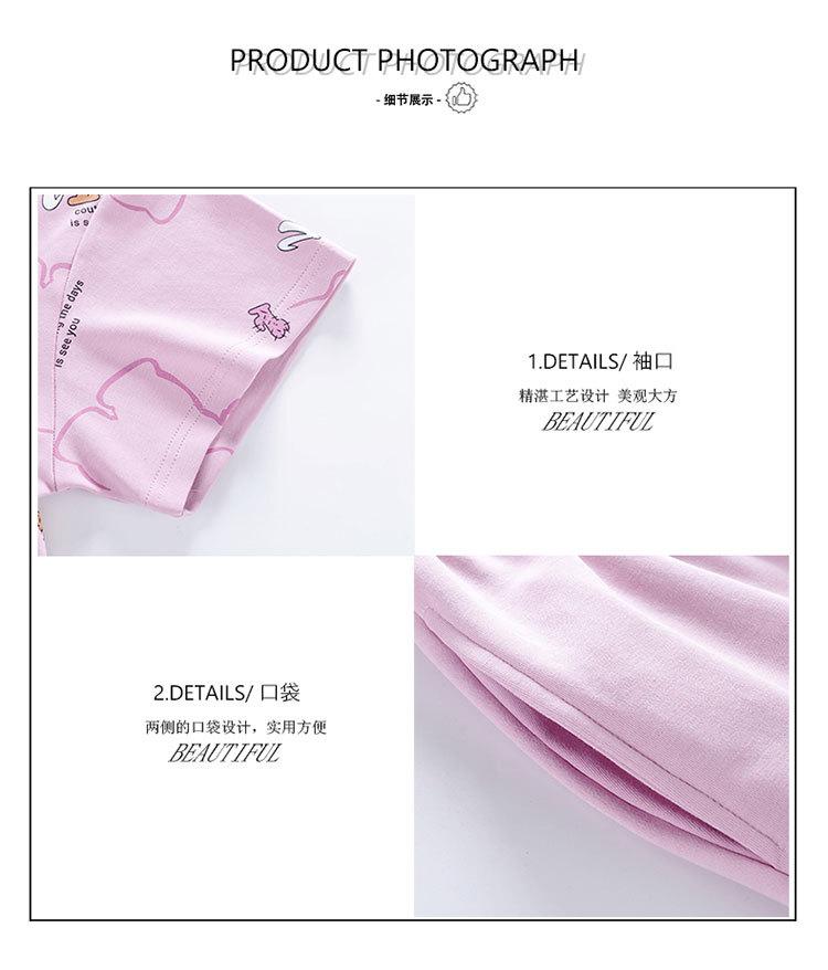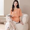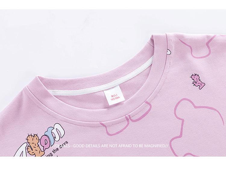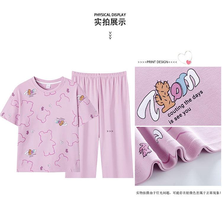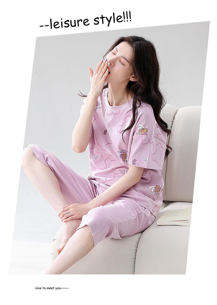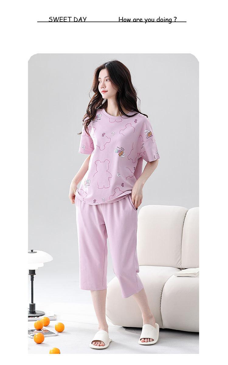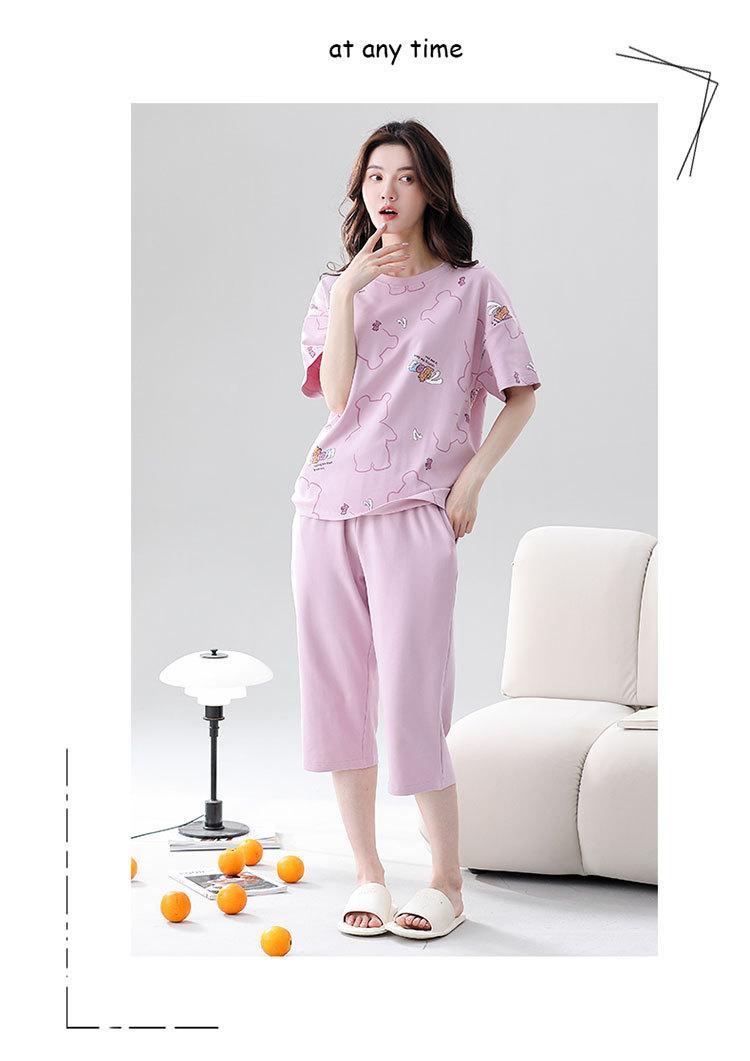 Pijamas de Verano para Mujer Algodón Manga Corta Pantalón Capri Verano Delgadas Ropa de Casa de Algodón Traje de Dos Piezas