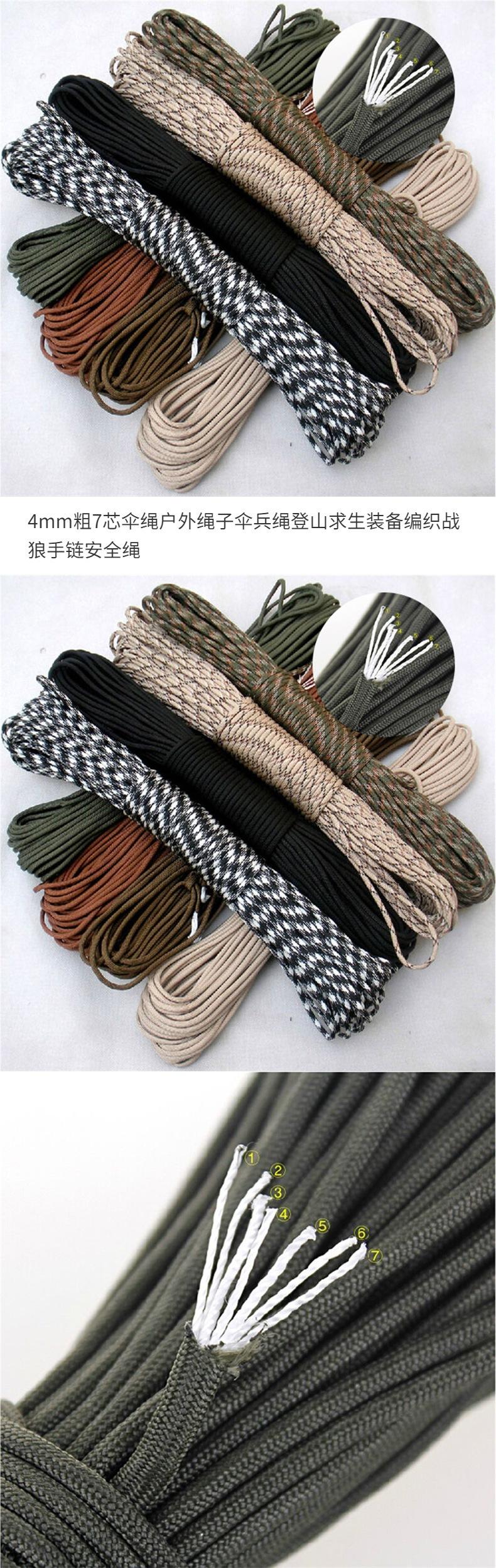 Cuerda paracord de 7 núcleos de 4 mm de grosor, cuerda para exteriores, cordón de paracaídas, equipo de supervivencia para escalada, pulsera tejida de lobo guerrero, seguridad