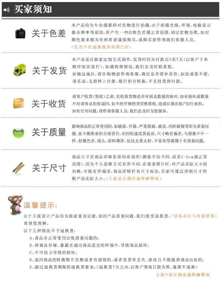 Nuestros productos son todos de gama media a baja, con ligeras imperfecciones. Si tiene requisitos particularmente altos, por favor no haga un pedido. Una vez realizado un pedido, los reembolsos y devoluciones serán rechazados, gracias.