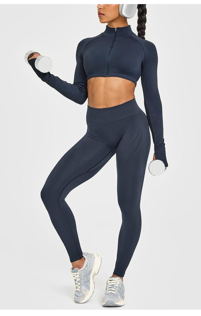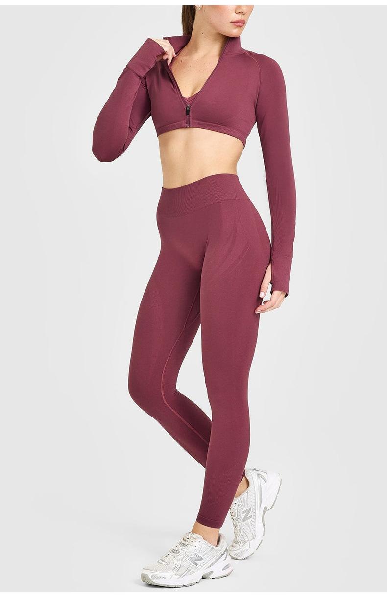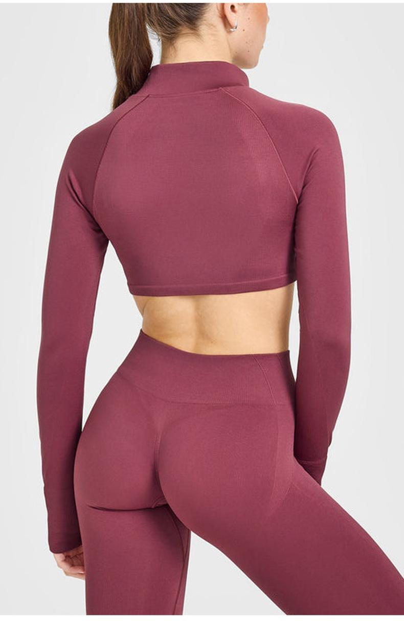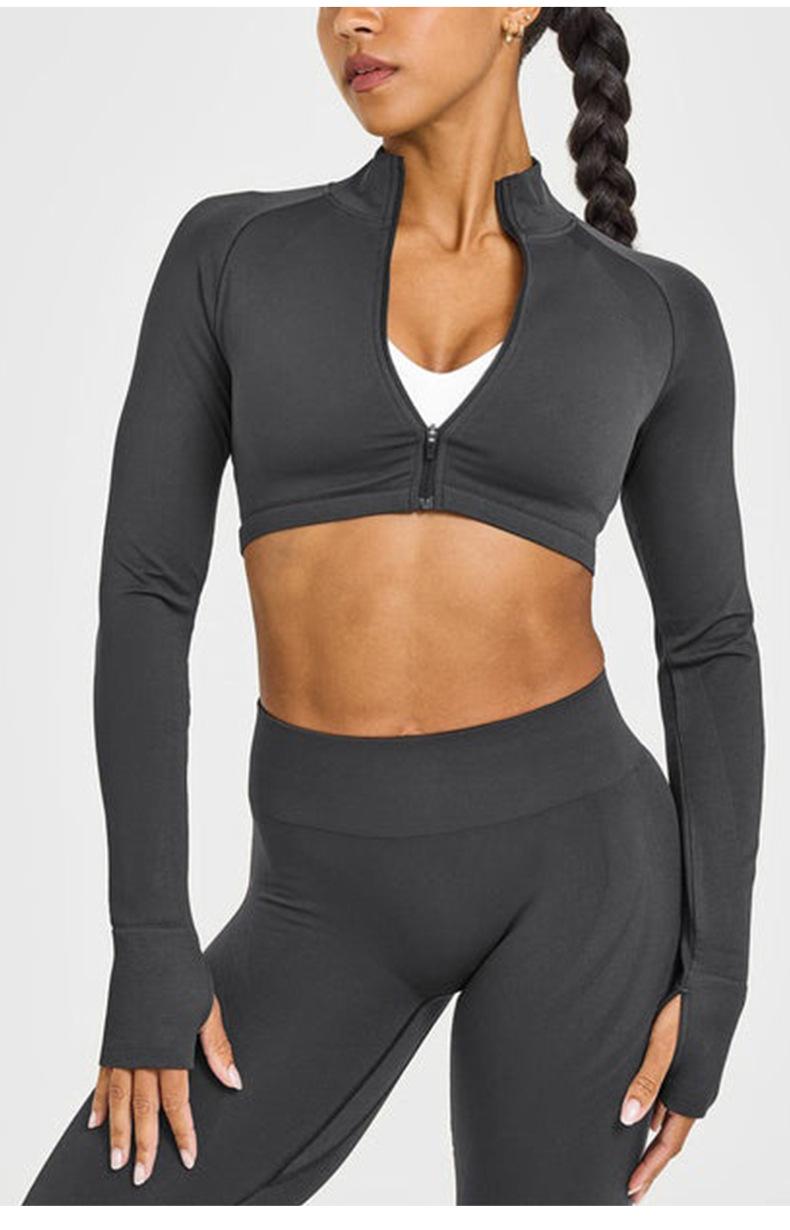 Traje de Yoga de Manga Larga con Cremallera Europeo y Americano Transfronterizo Fitness Deportivo Top Entrenamiento para Correr Transpirable Elástico Chaqueta de Yoga para Mujer