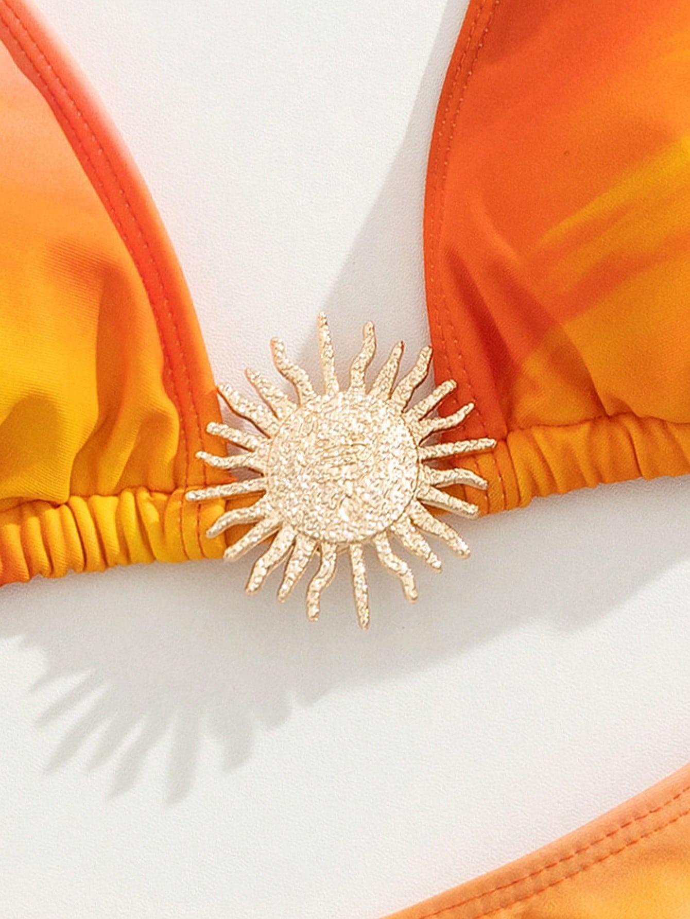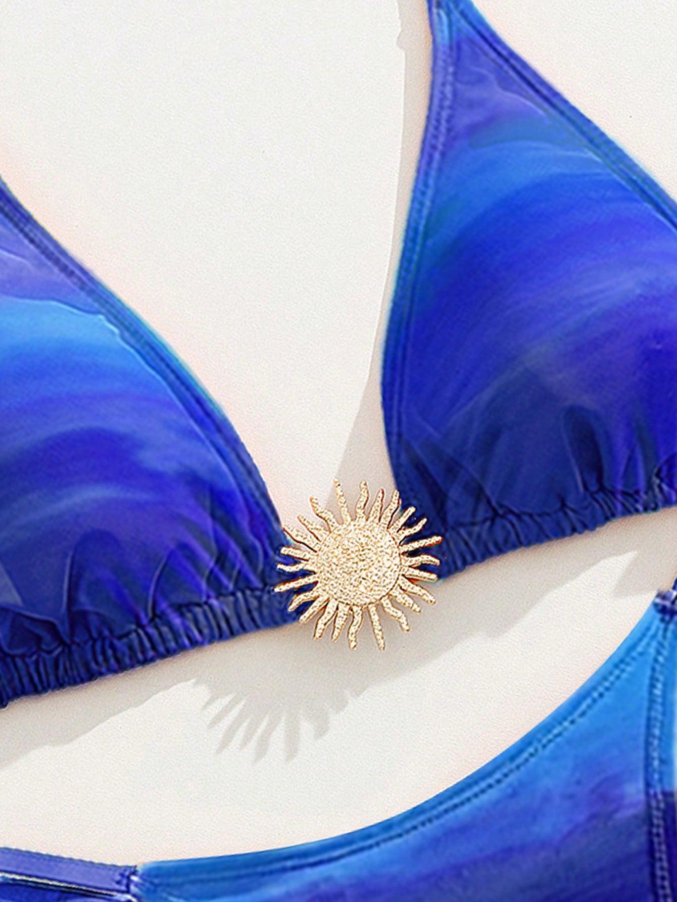 Traje de Baño Europeo y Americano para Mujer Bikini Sexy Dividido Cuello Halter Sol Accesorios Metálicos Estampado Degradado Traje de Baño de Comercio Exterior Transfronterizo