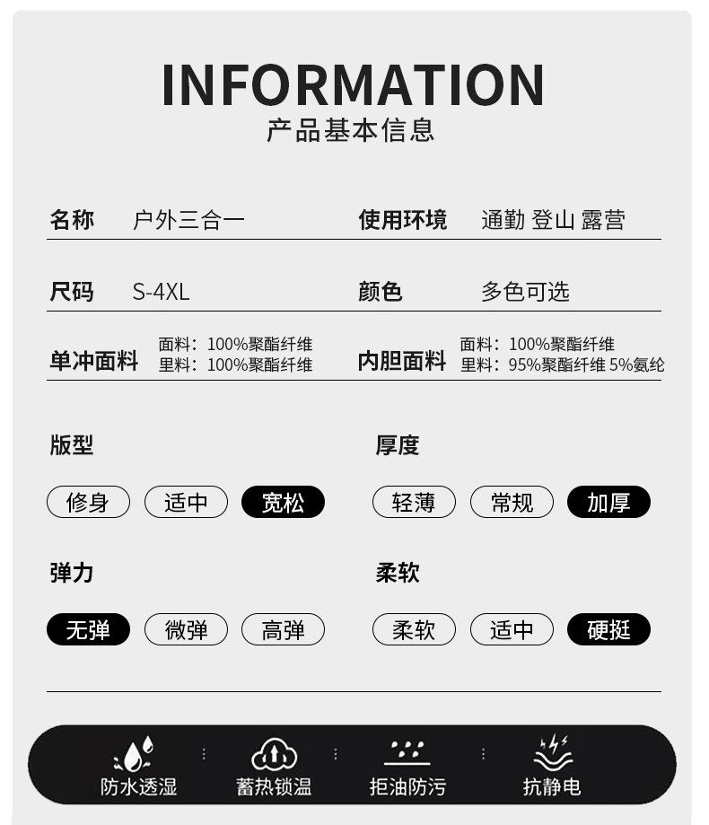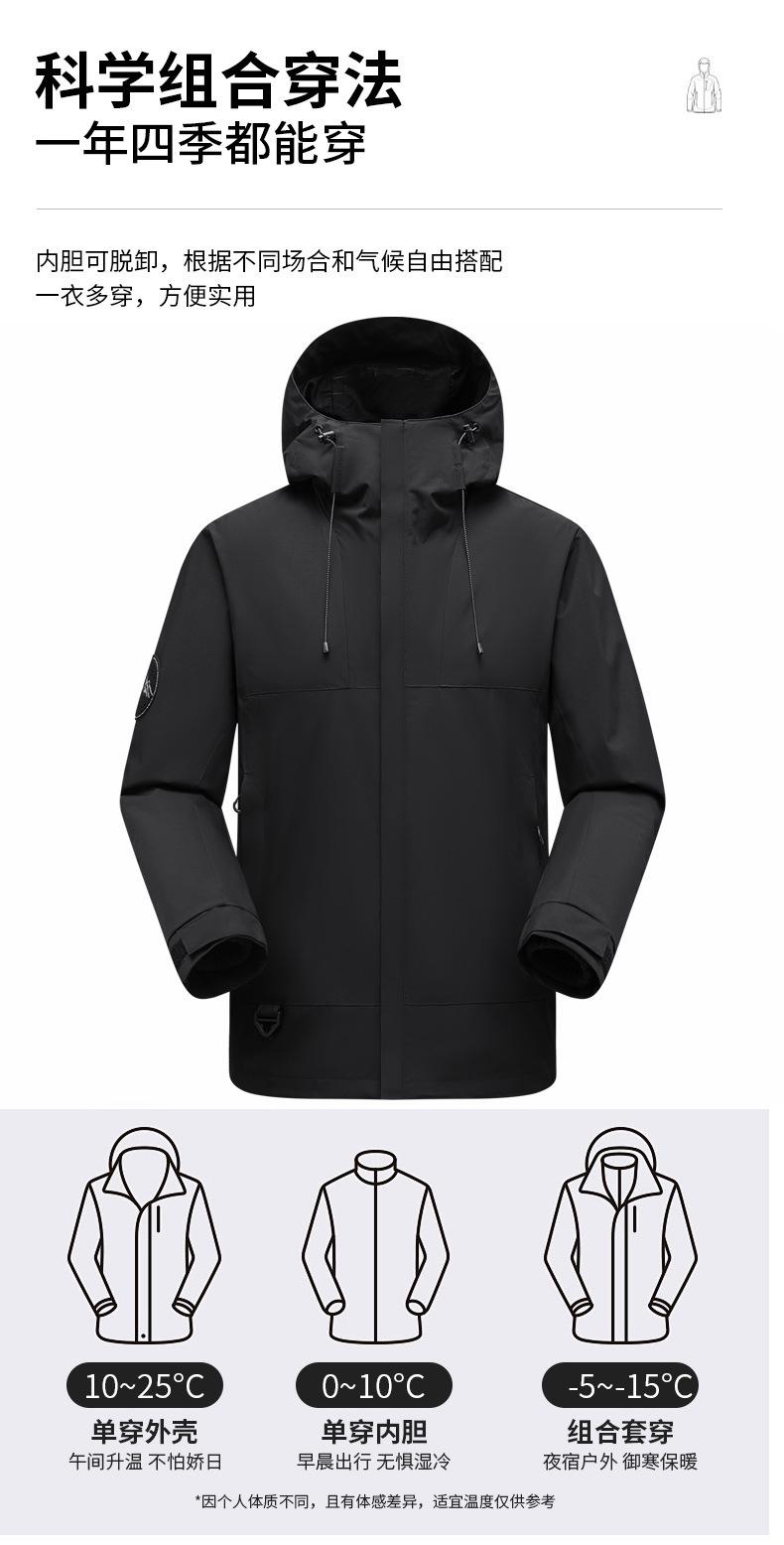 Cortavientos Impermeable Personalizado para Hombre y Mujer Tres en Uno con Forro Desmontable con Forro Polar Engrosado Invierno Exterior Cálido a Prueba de Viento
