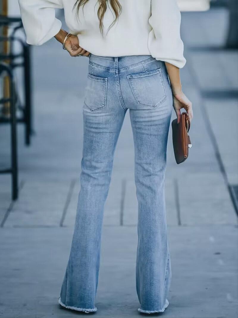 Jeans europeos y americanos para mujer Amazon venta al por mayor transfronteriza pantalones micro acampanados cintura alta slim jeans azules para mujer tendencia