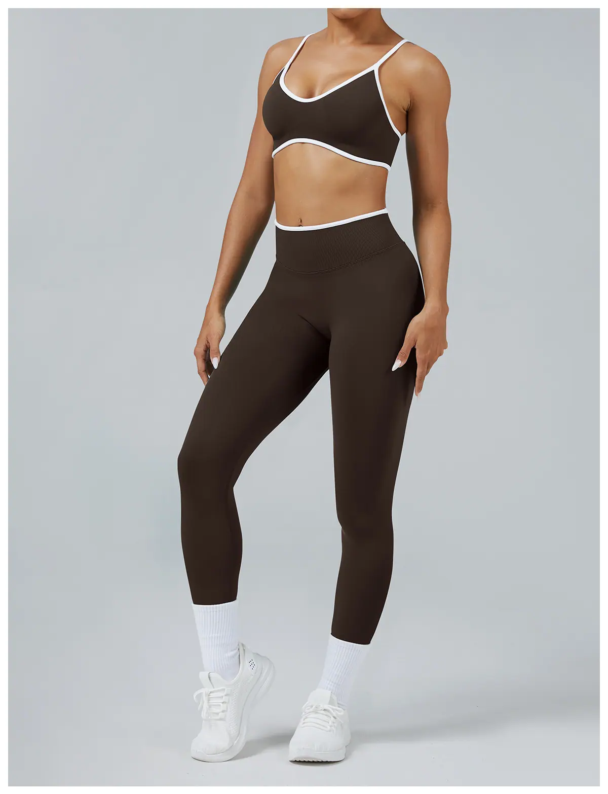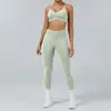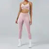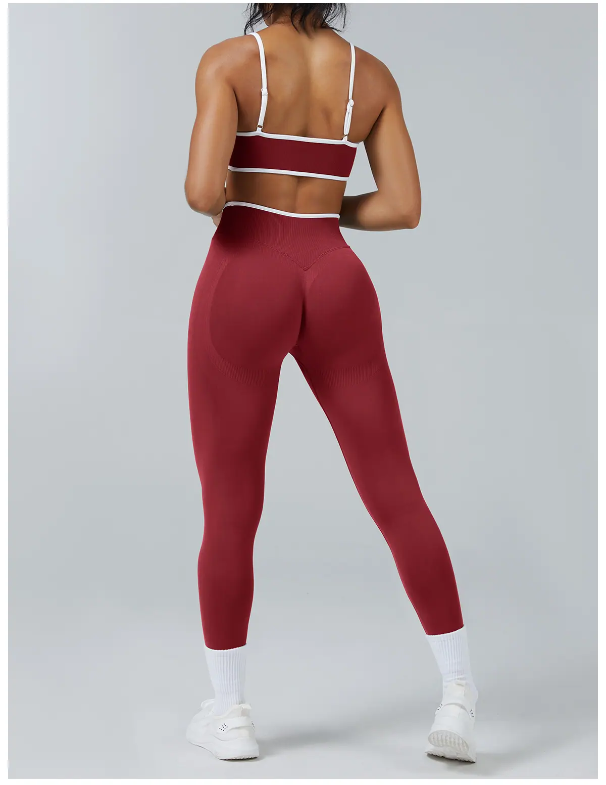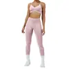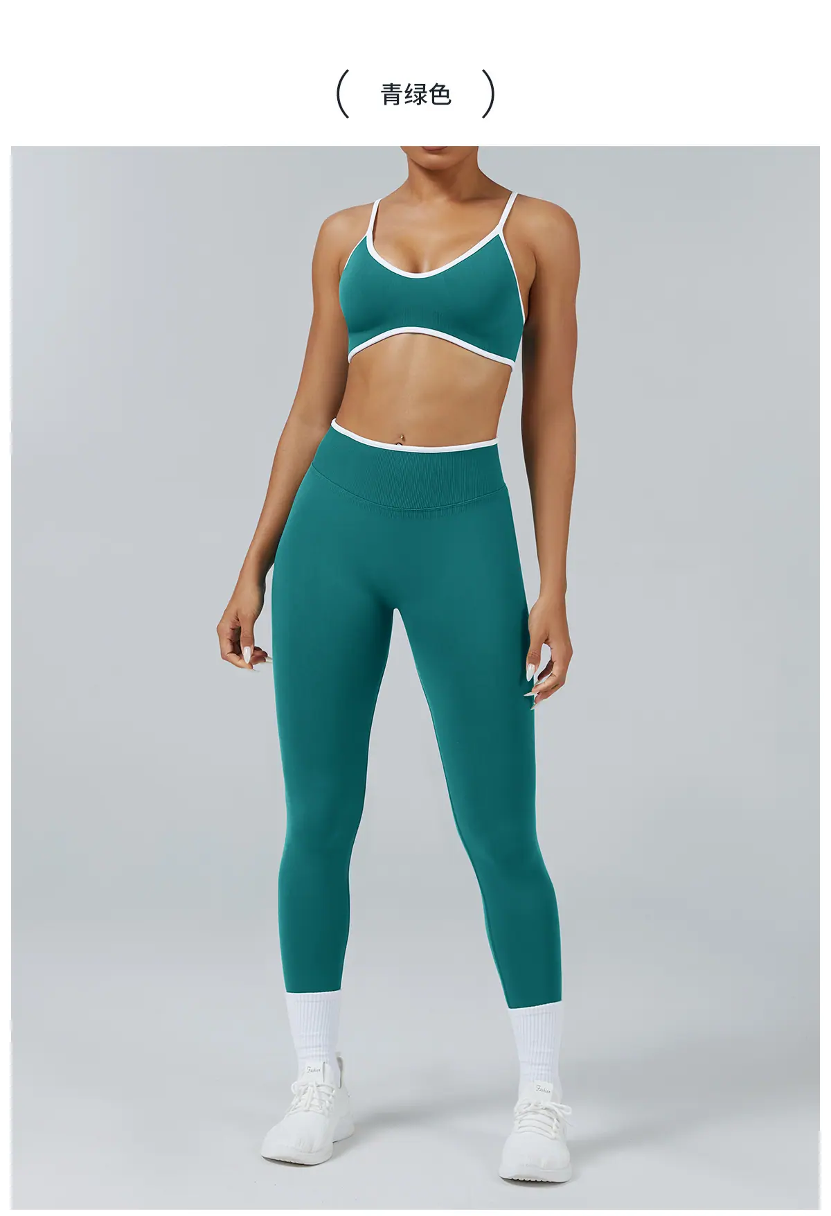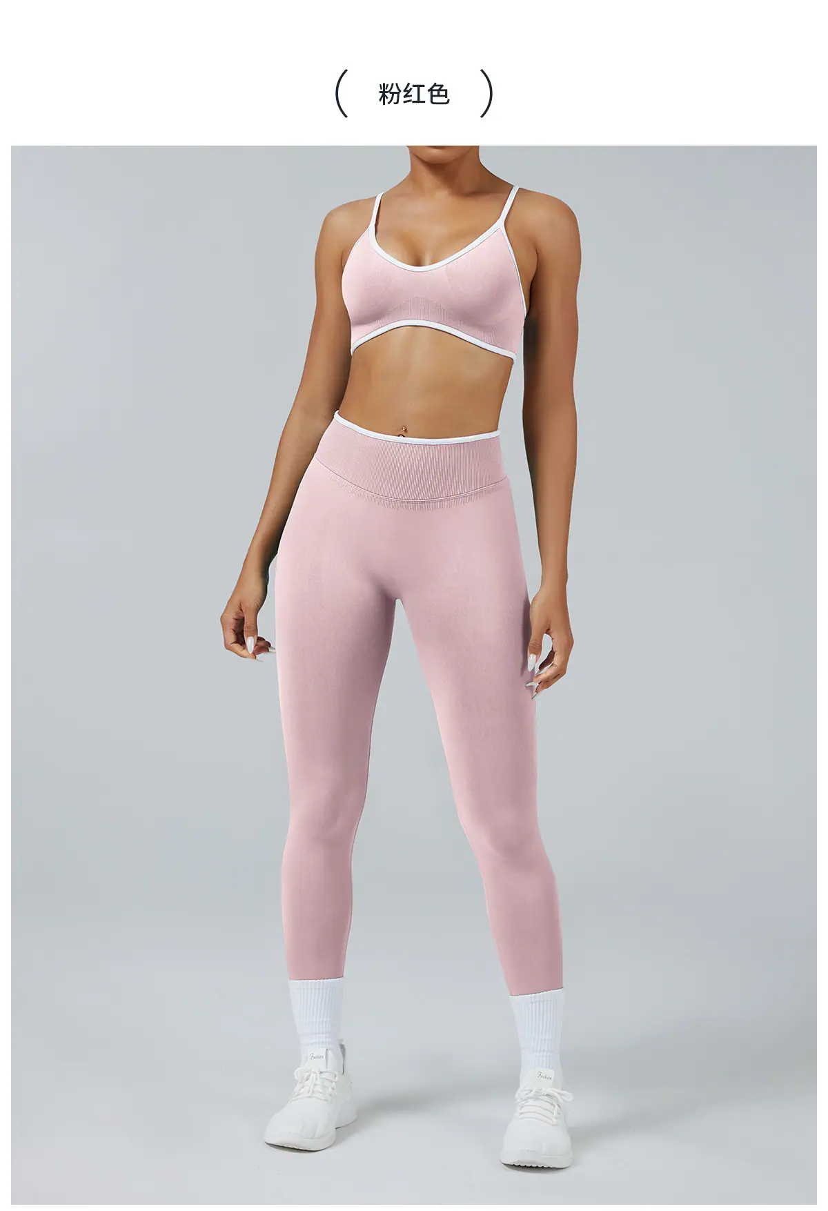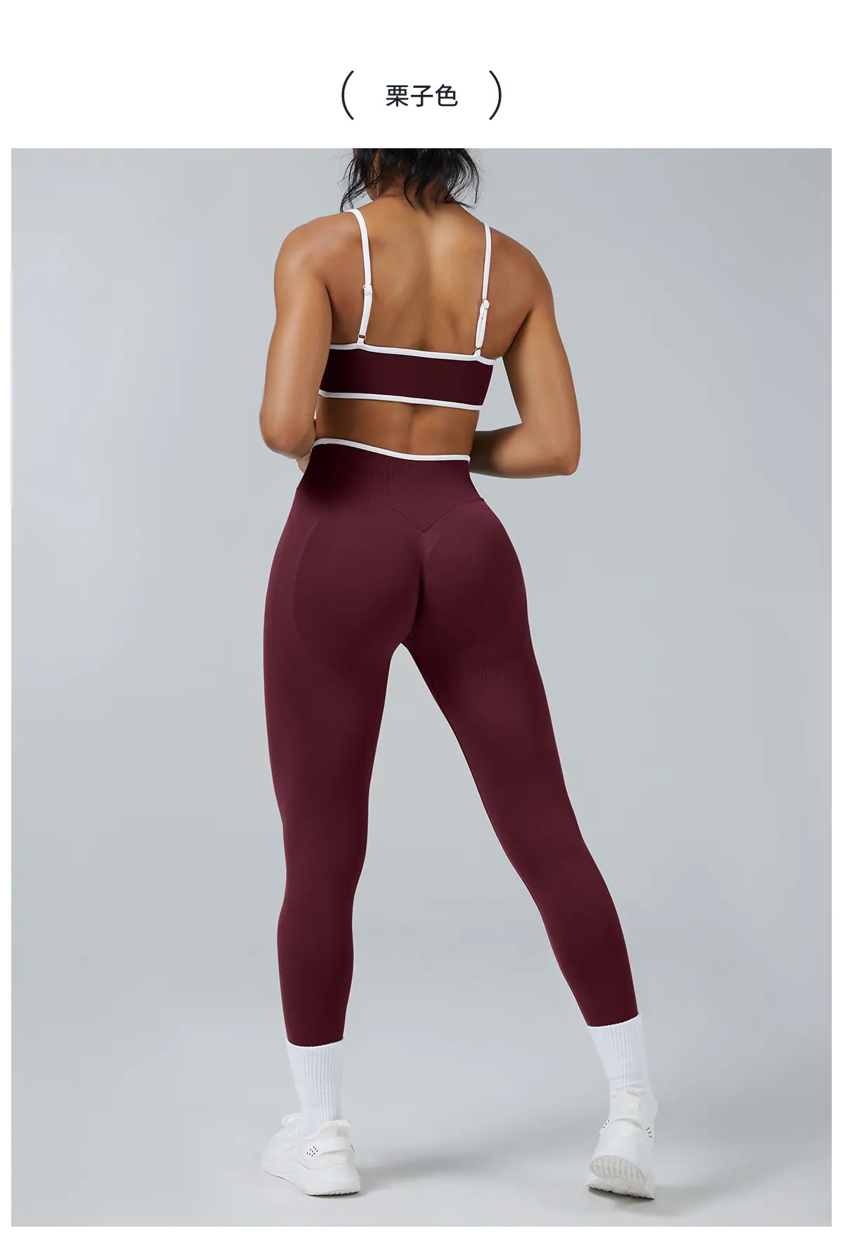 Conjunto de Traje de Yoga Hermoso de Espalda Sin Costuras Europeo y Americano Bloque de Color Conjunto Deportivo Sin Costuras para Correr Transpirable Ajustado de Alta Elasticidad Pantalones de Yoga