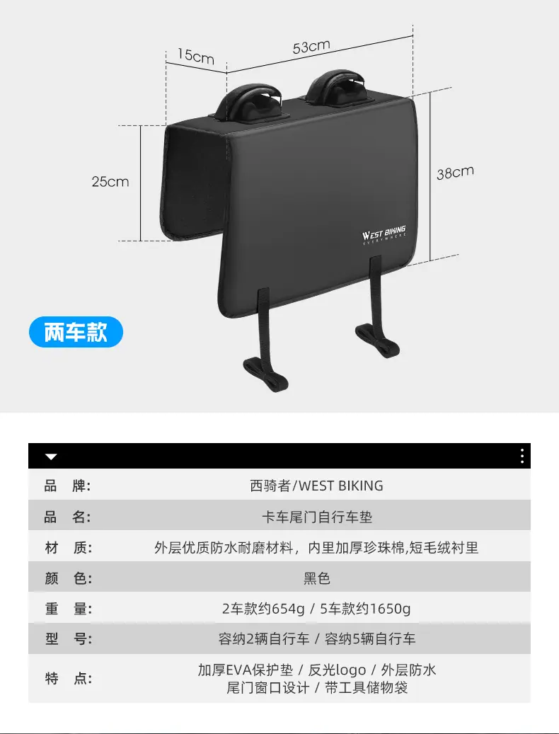 West Rider Almohadilla para Bicicleta de Portón Trasero de Camioneta Pickup Cubierta Fija para Bicicleta de Portón Trasero Almohadilla Protectora Equipo para Bicicleta