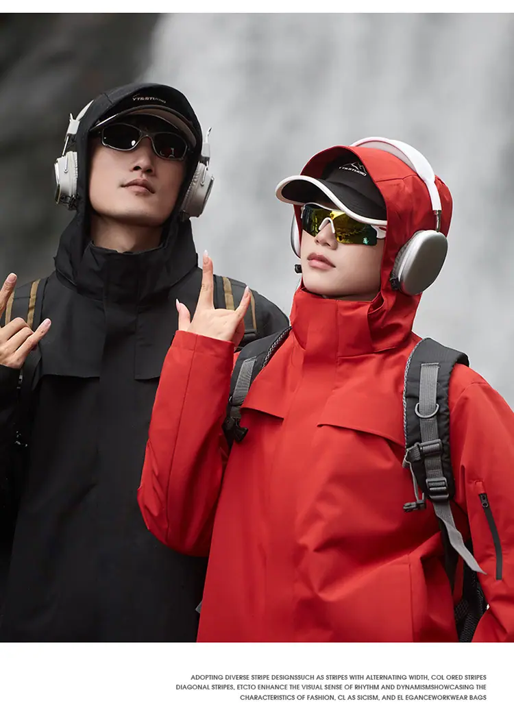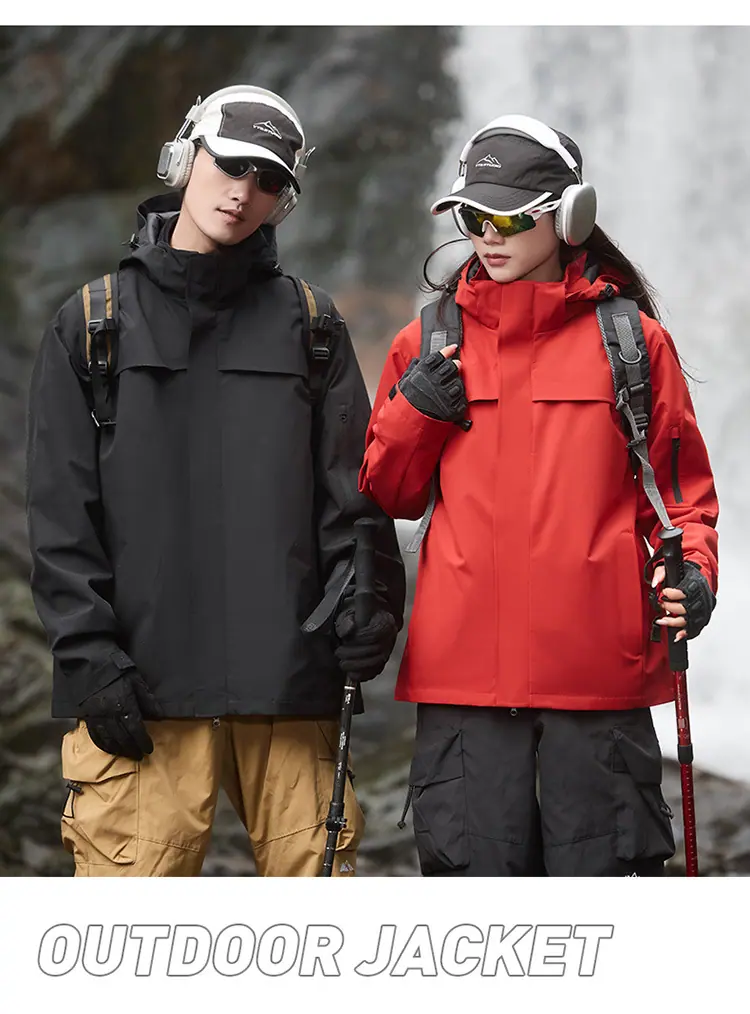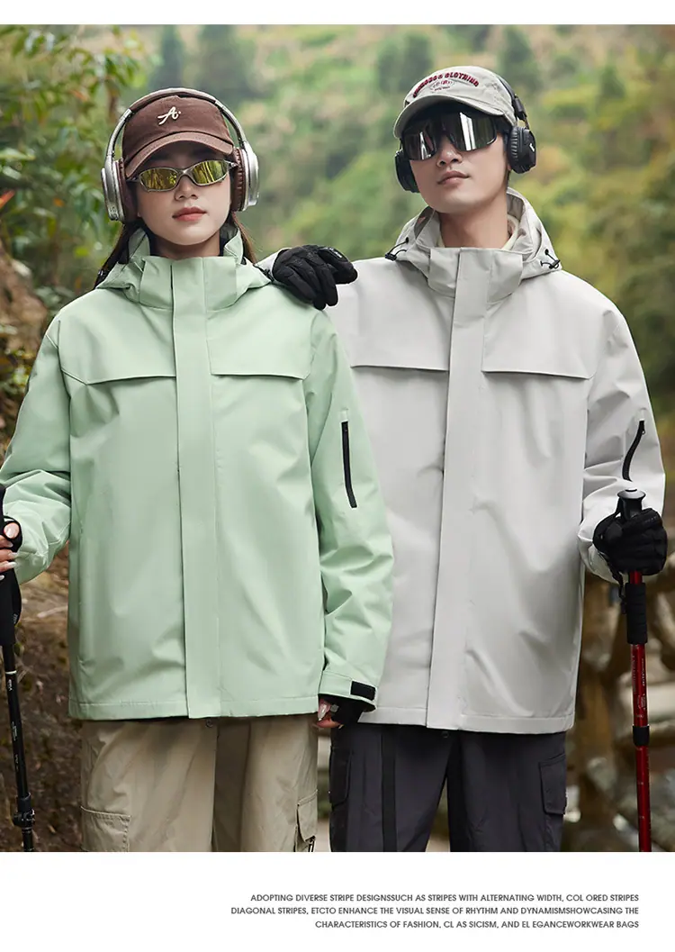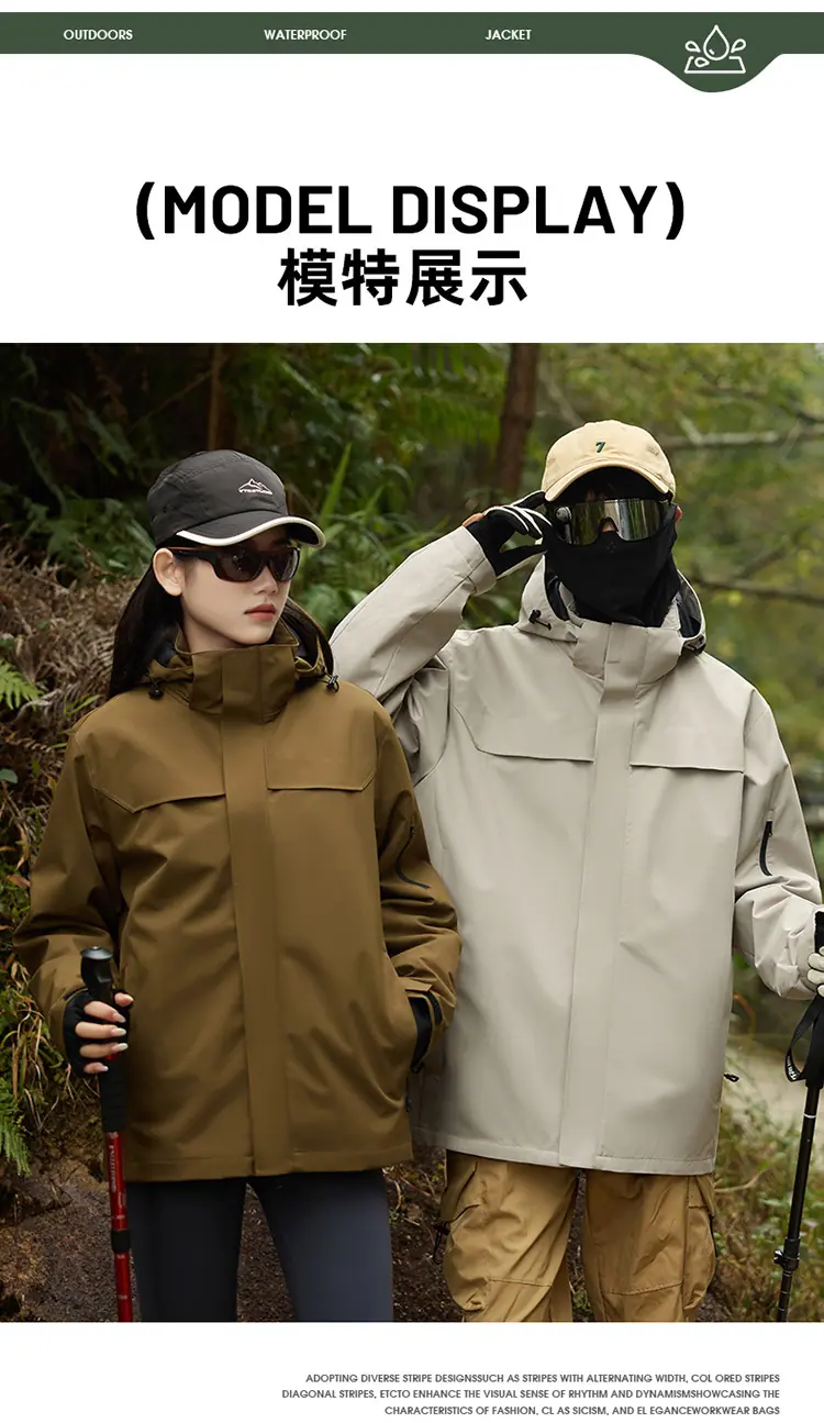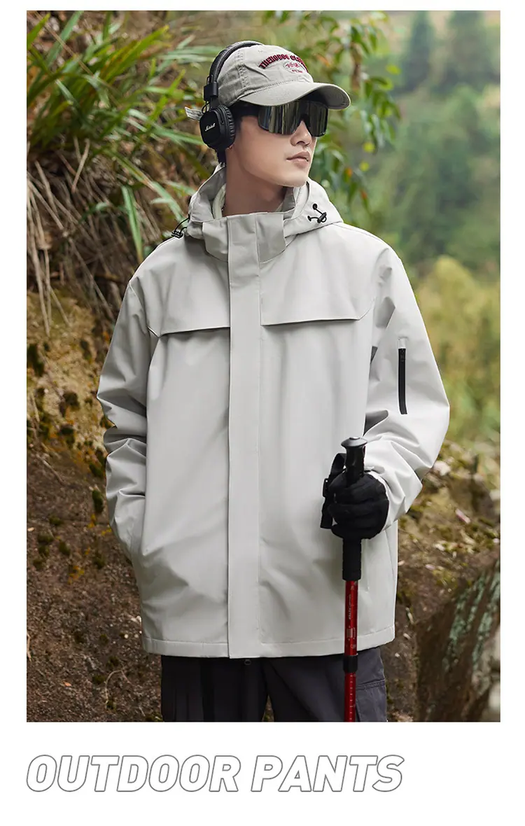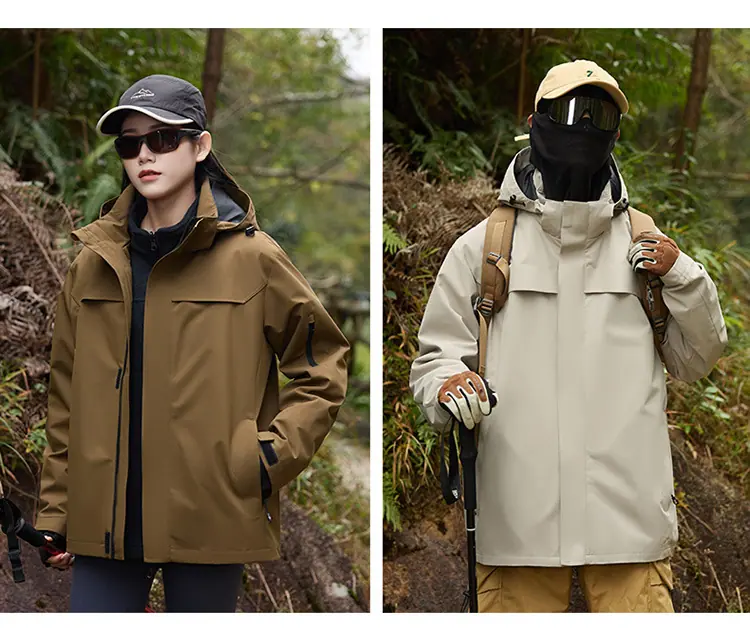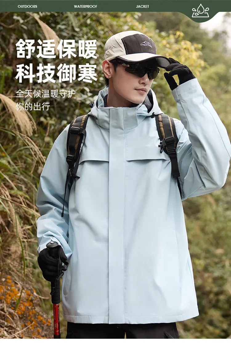 Traje de montañismo impermeable para exteriores de invierno personalizable para hombre y mujer, cortaviento y cálido, chaqueta desmontable tres en uno