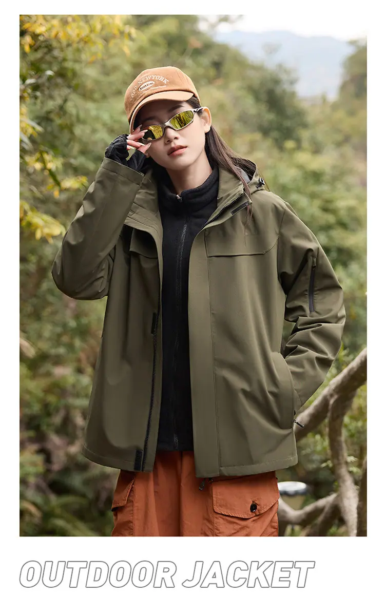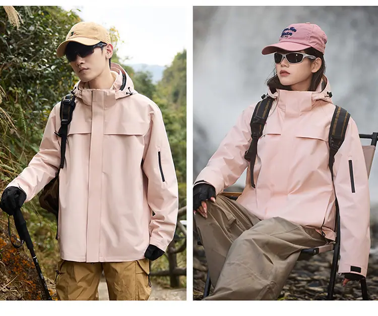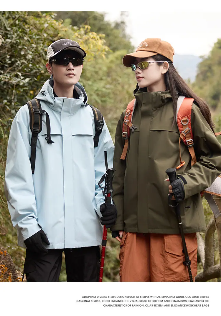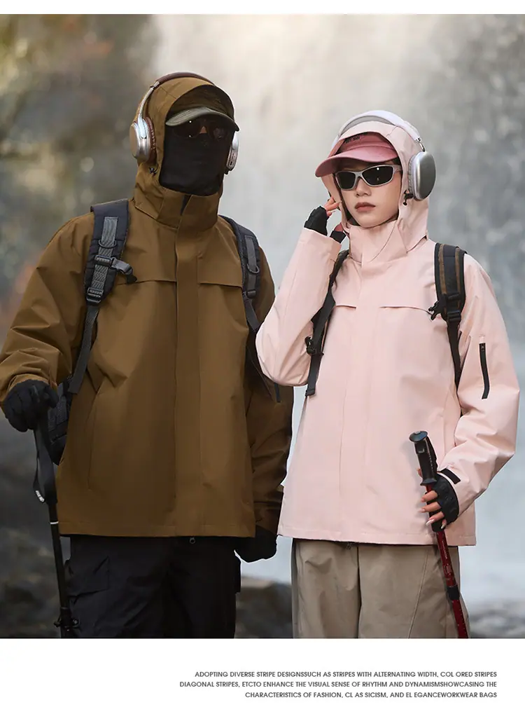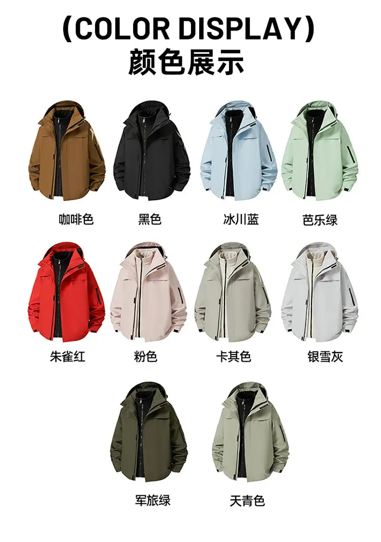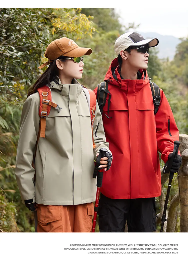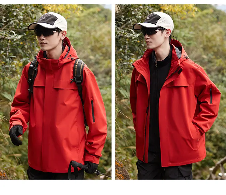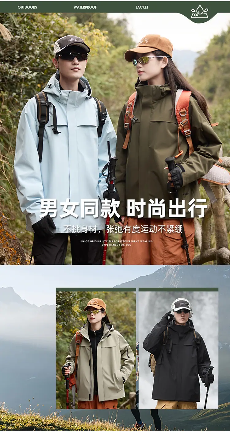 Traje de montañismo impermeable para exteriores de invierno personalizable para hombre y mujer, cortaviento y cálido, chaqueta desmontable tres en uno