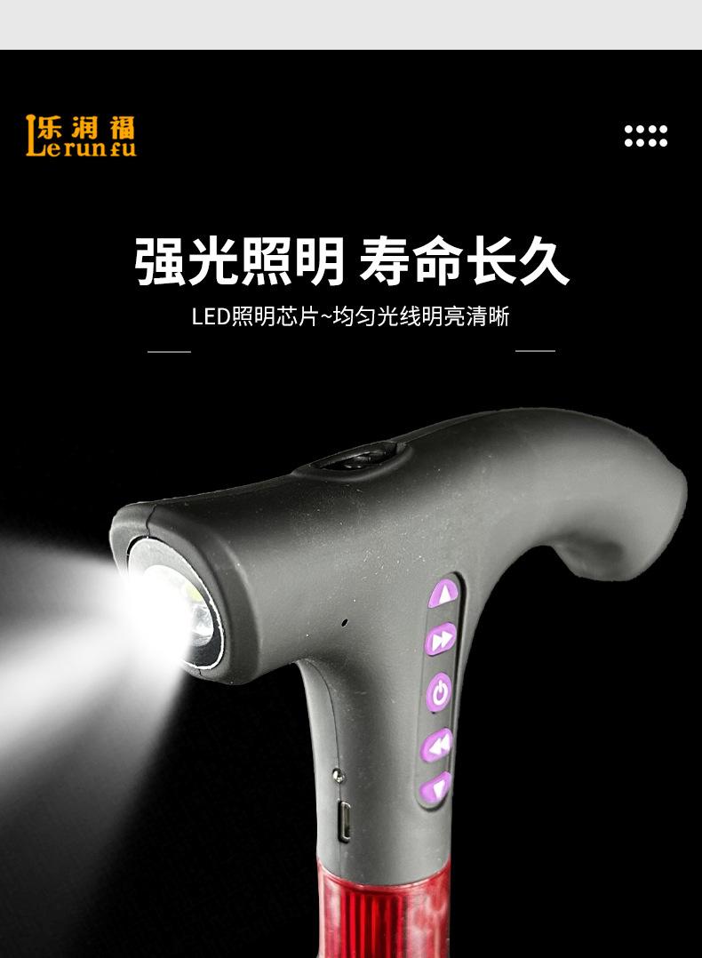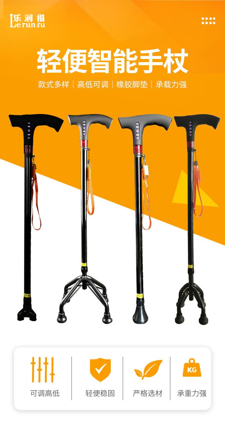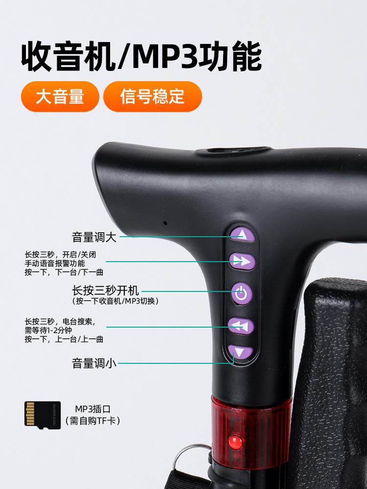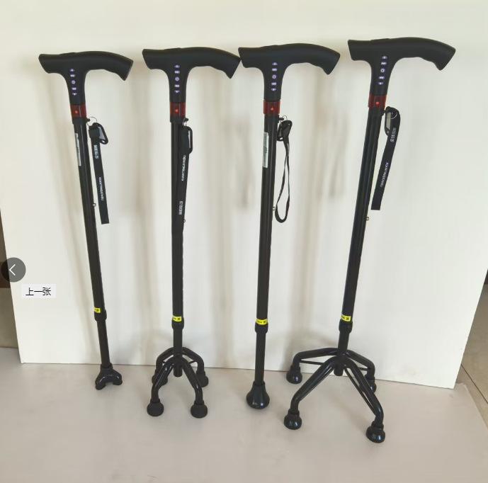 Bastón de cuatro patas antideslizante al por mayor bastón de radio inteligente ligero antideslizante bastón multifuncional con luz bastón para persona discapacitada