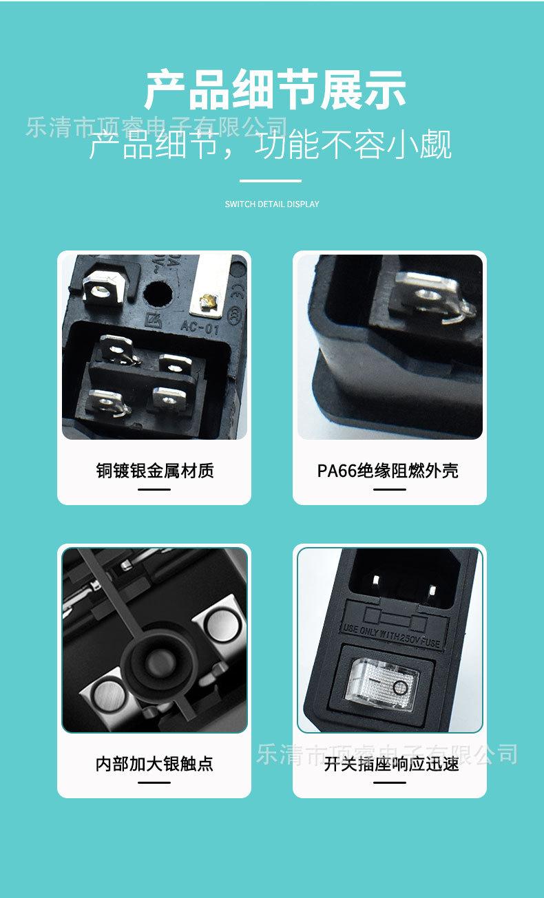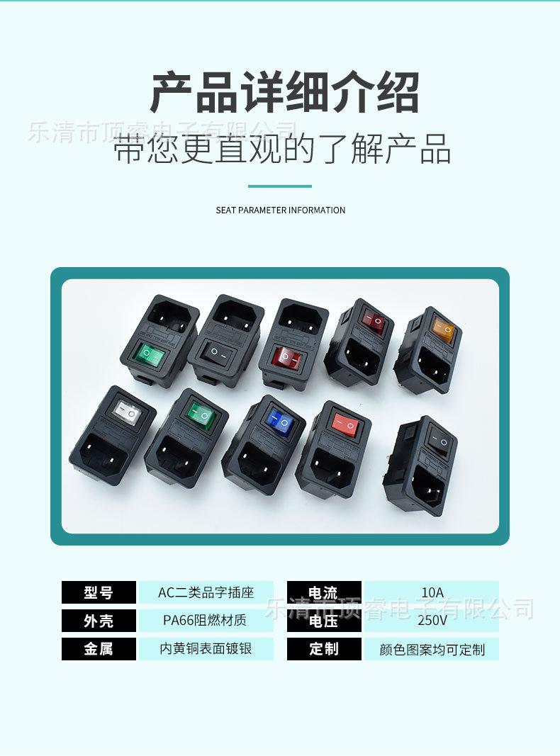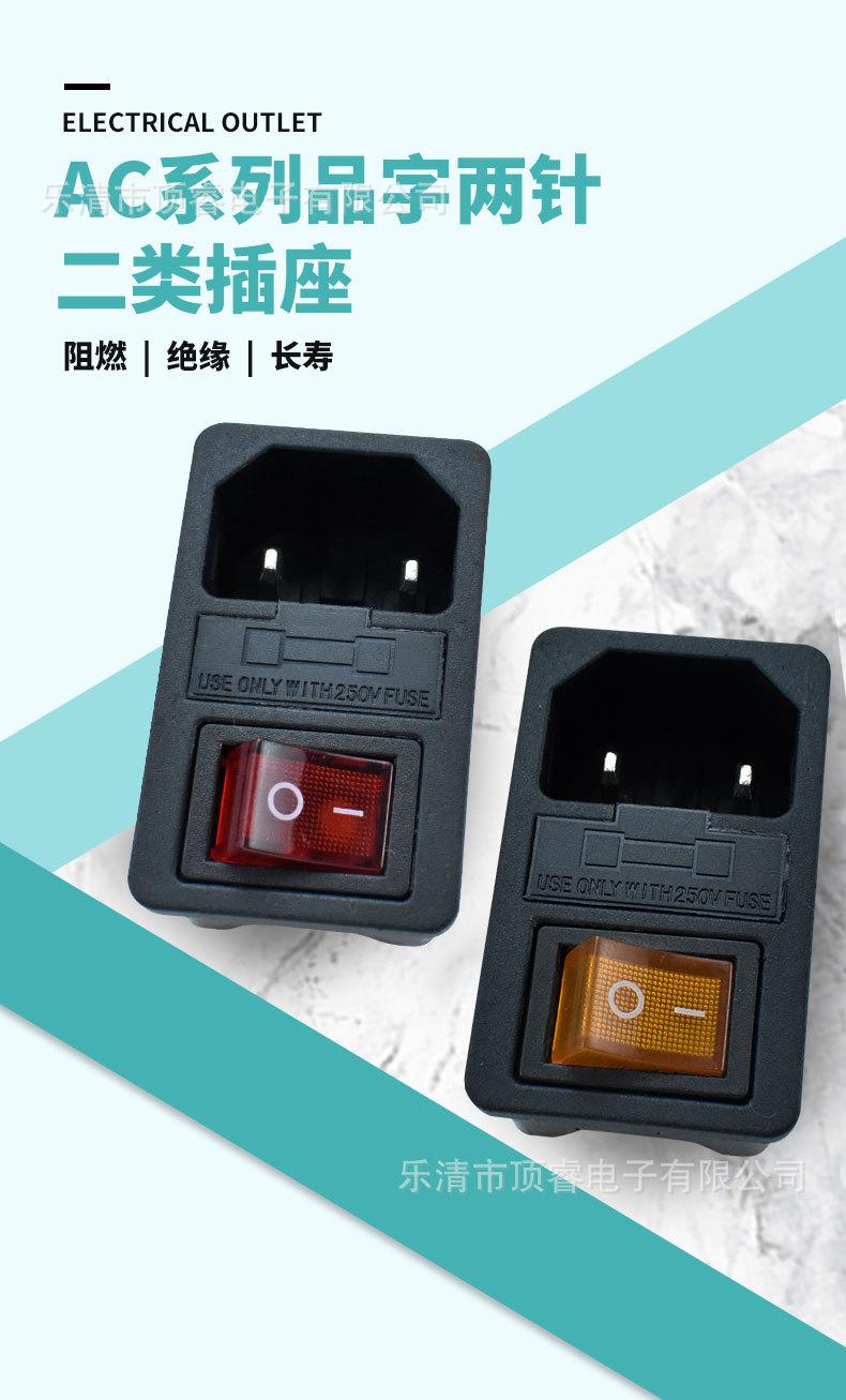 Toma de corriente CA, toma de dos núcleos en forma de 8 con interruptor, toma de corriente para electrodomésticos DB dos en uno cuadrada en forma de barco, toma industrial
