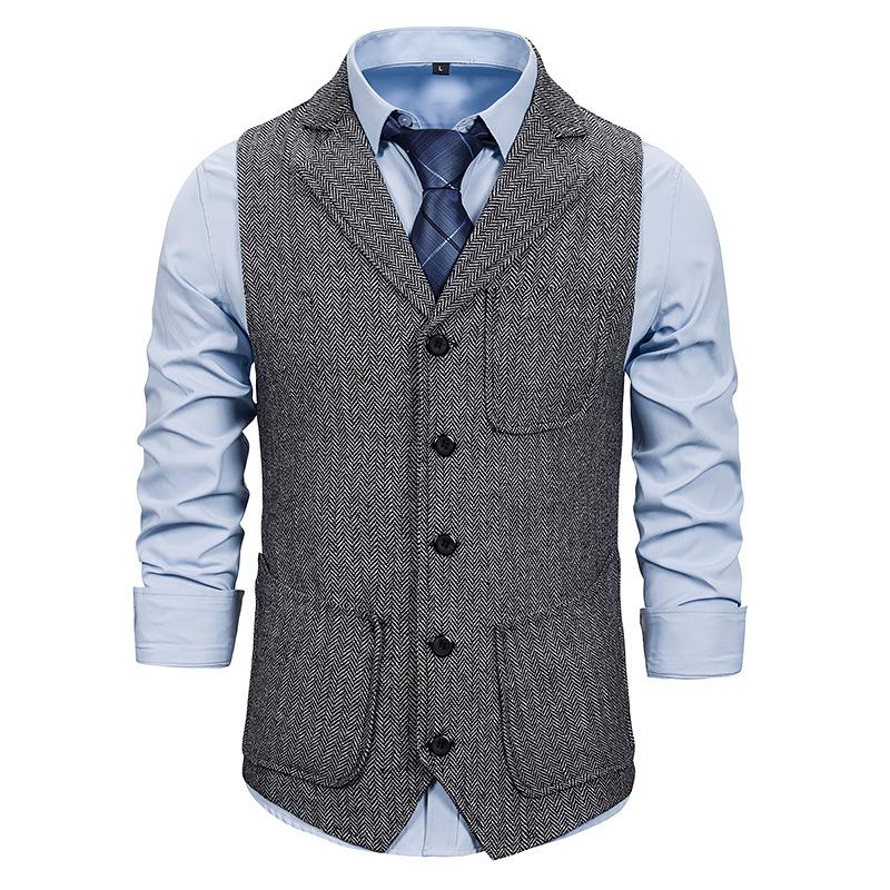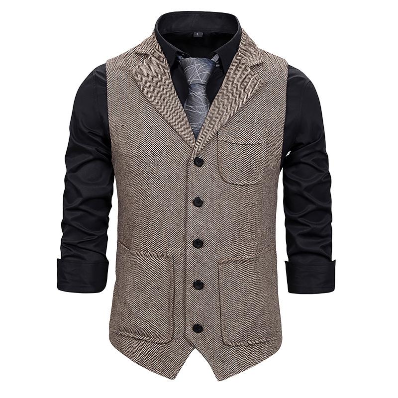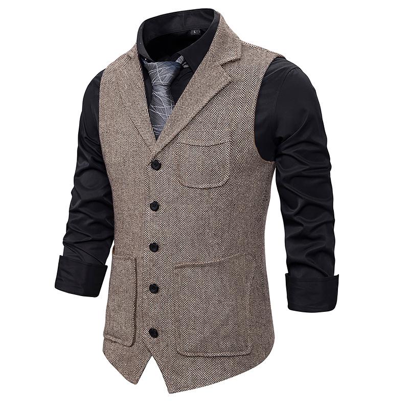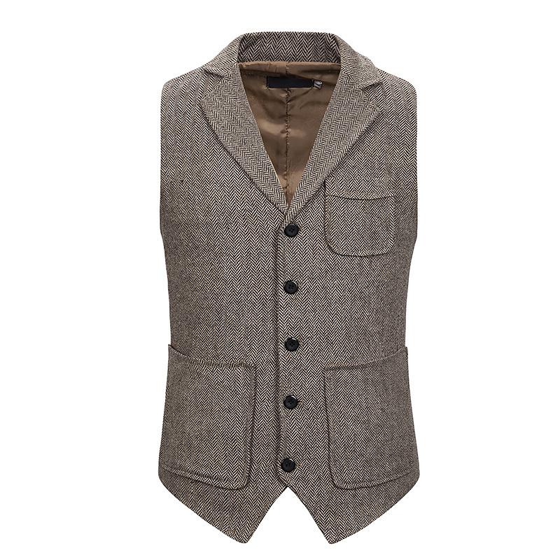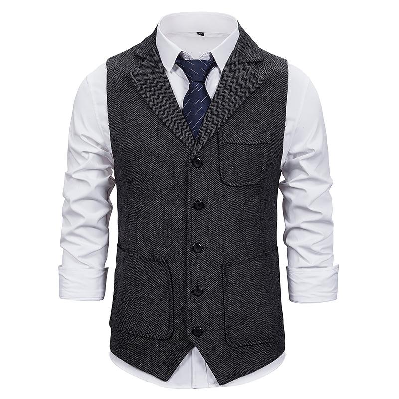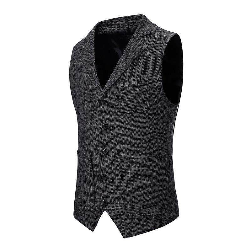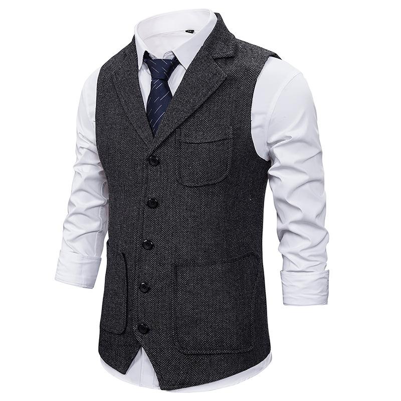 2021 comercio exterior nuevo transfronterizo chaleco de espiga para hombre de un solo pecho con solapa estilo británico chaleco de traje multibolsillo