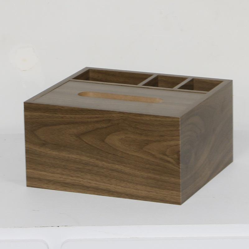 Caja de pañuelos de madera color nogal sala de estar lujo ligero multifuncional mesa de centro caja de almacenamiento de control remoto pañuelos de escritorio portalápices