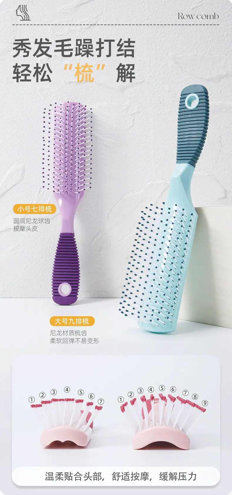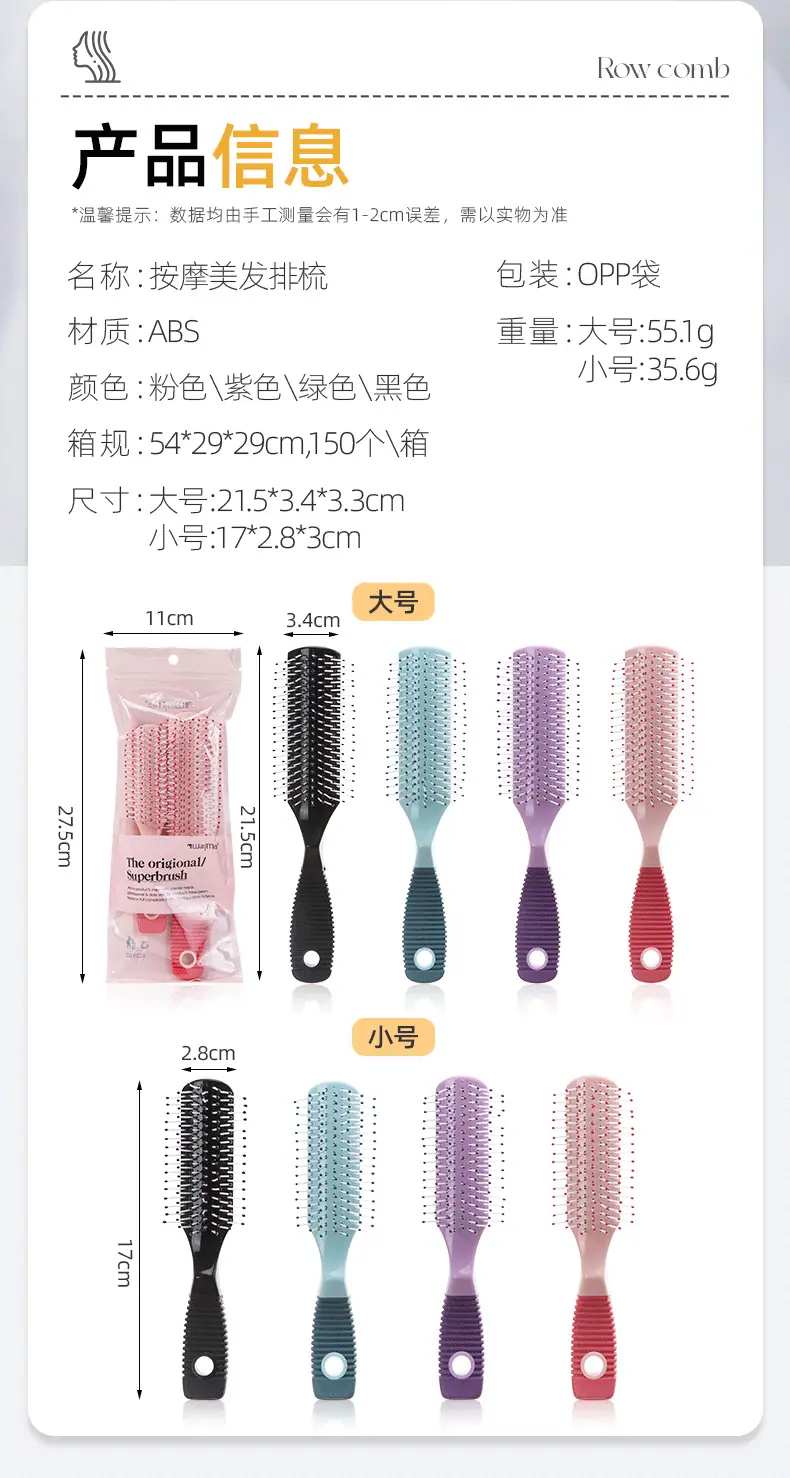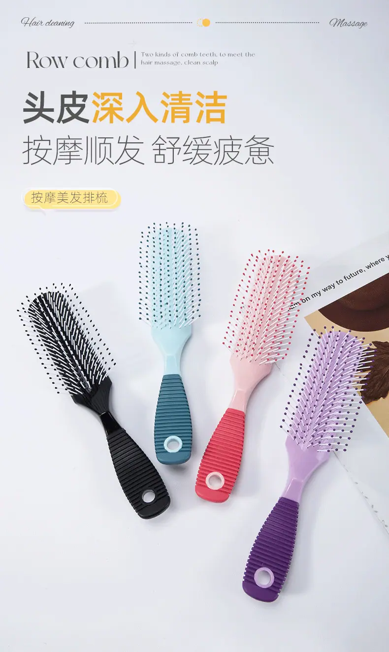 Peine de Plástico de Uso Diario para el Hogar Masaje Peinado Peine de Púas para Cabello Encrespado Liso Peine para Cabello Rizado Cabello Lacio Peine de Peluquería Peine de Nueve Filas
