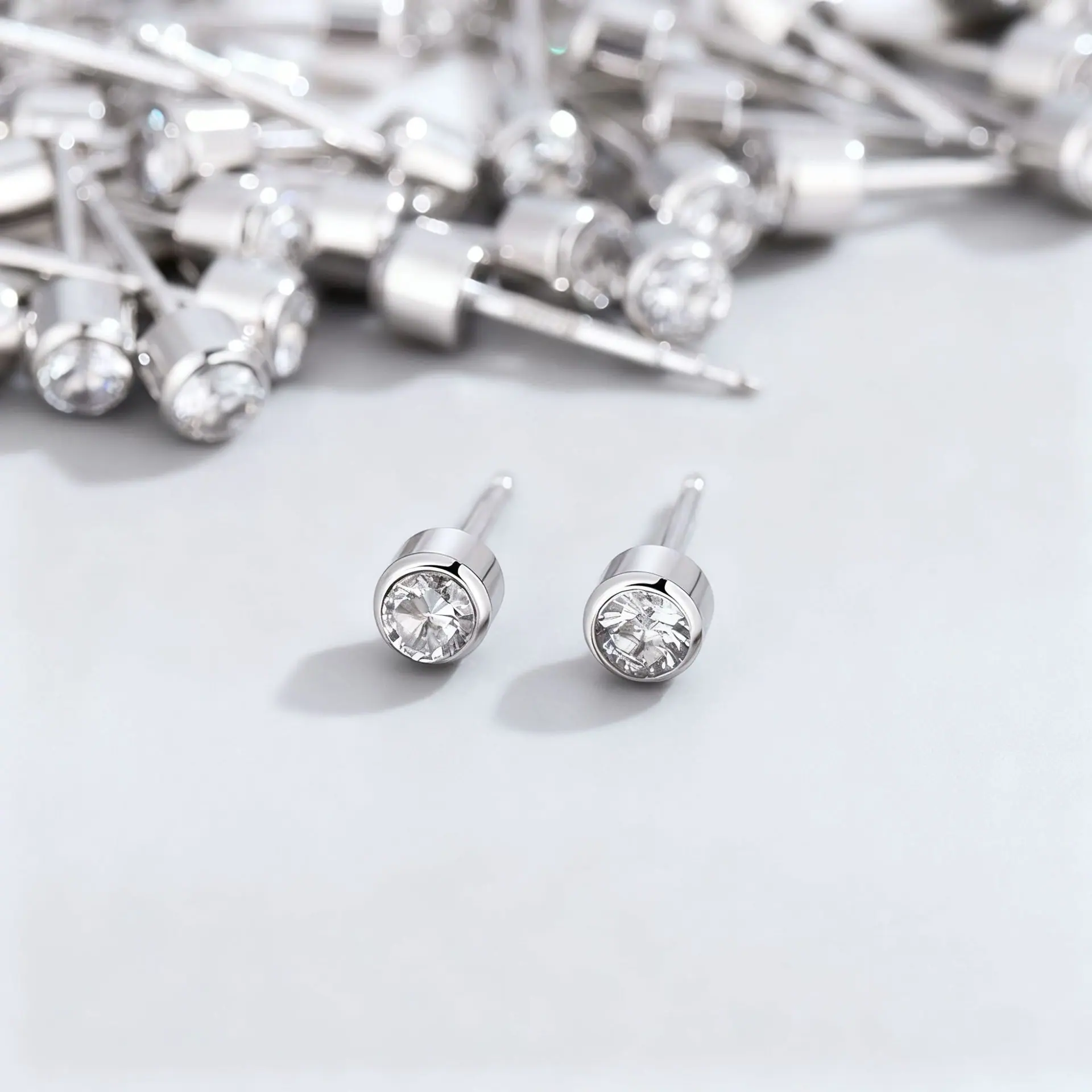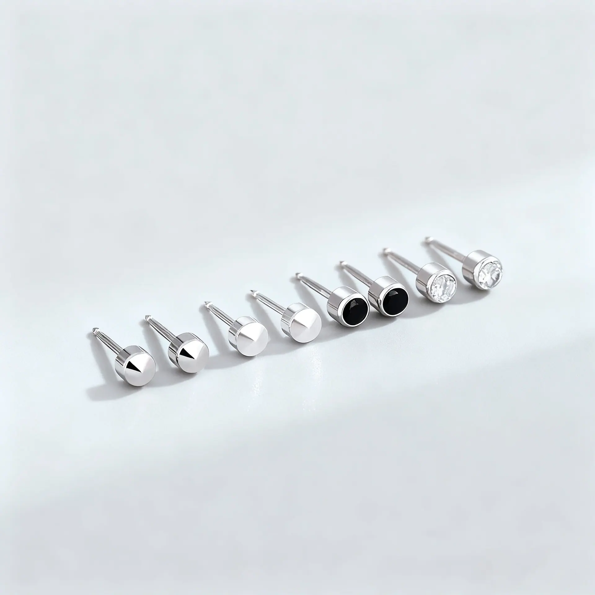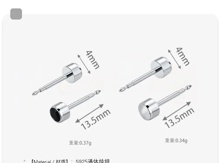 Plain Sterling Silver Stud Earrings [Pair], Plain Stud Earrings [White Gold Pair], Advanced Bright Black Diamo...